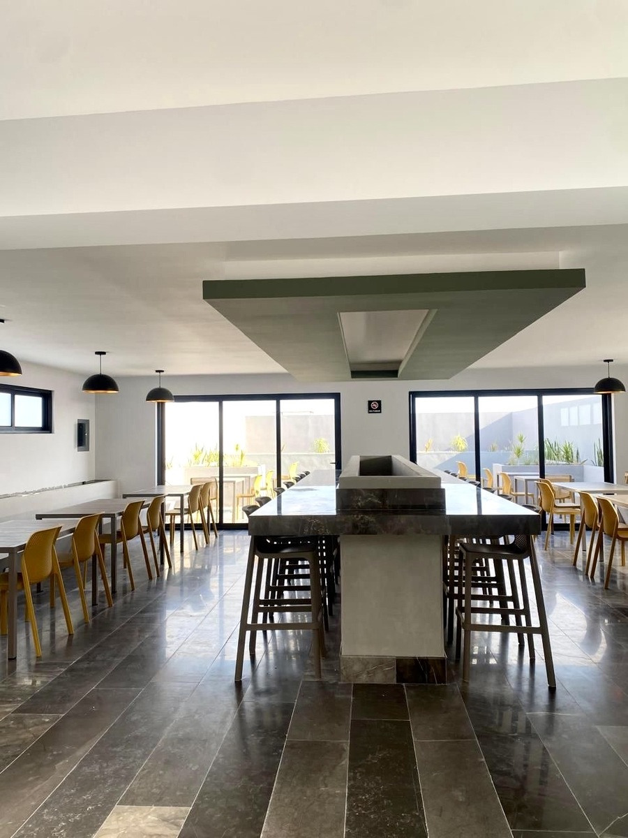 • Comedor panorámico climatizado con refrigerador, parrilla eléctrica y horno