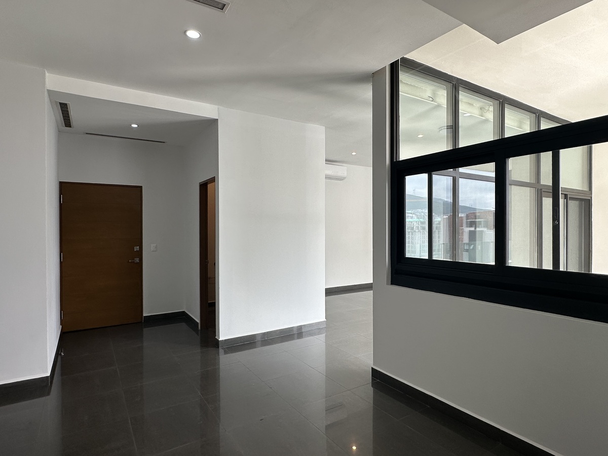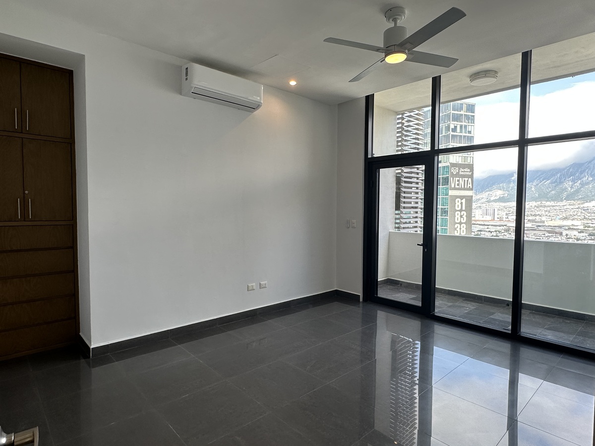 Espectacular Penthouse en renta en el último piso de la torre Kerenda, en Valle Poniente, ideal para familias con hijos. Tres recámaras con terraza, baño y vestidor cada una, family room con otra terraza, sala comedor con enormes ventanales e increíble vista a la Sierra Madre, cocina equipada, cuarto de servicio y lavandería equipada. Equipado con clima central en el área social y cocina, minisplits en cada recámara y persianas eléctricas en todo el departamento.