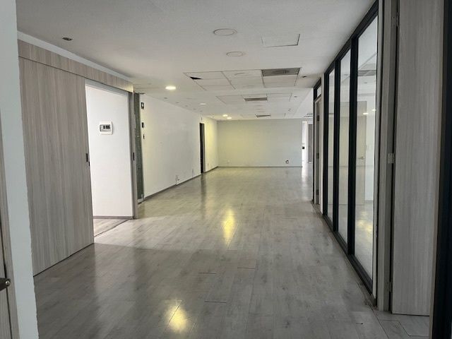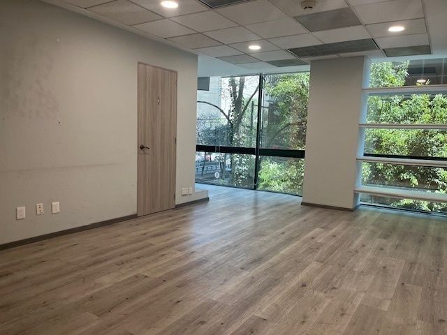 La distribución del piso es: 11 privados, área abierta de trabajo, salas de juntas, cocineta, 3 medios baños, bodega ,11 lugares de estacionamiento. Cuenta con aire acondicionado, plafón, lámparas. El precio de Renta es de $385 MN por m2, dando un total de $255,575 MN, más mantenimiento de $80MN por m2, más IVA.