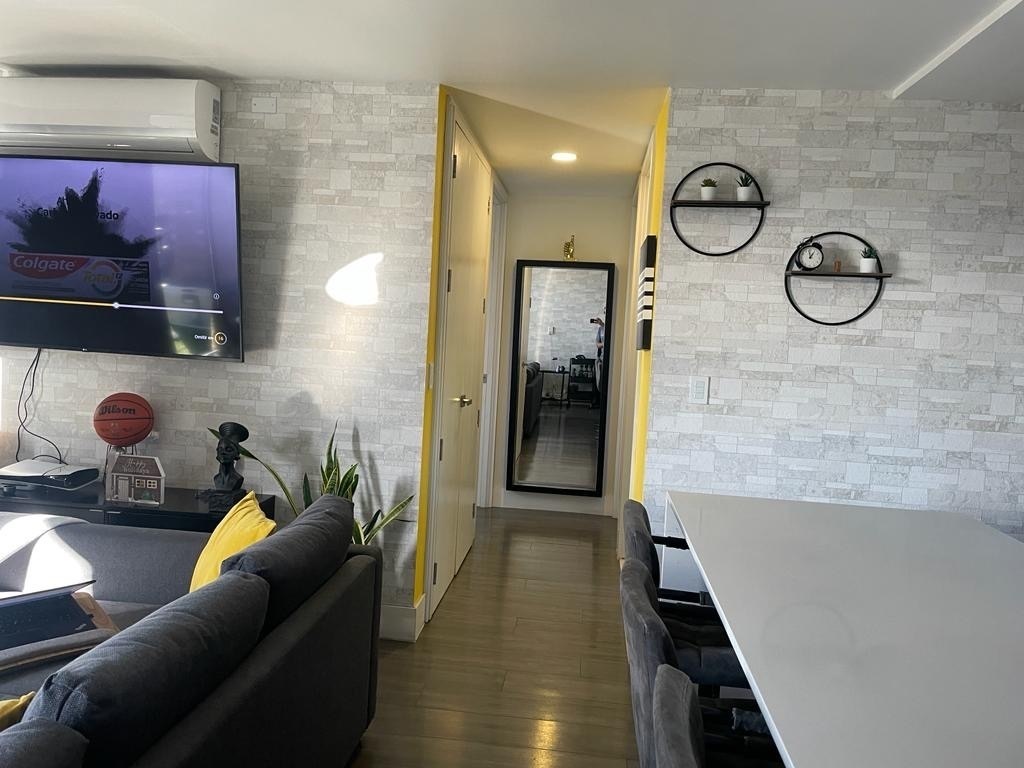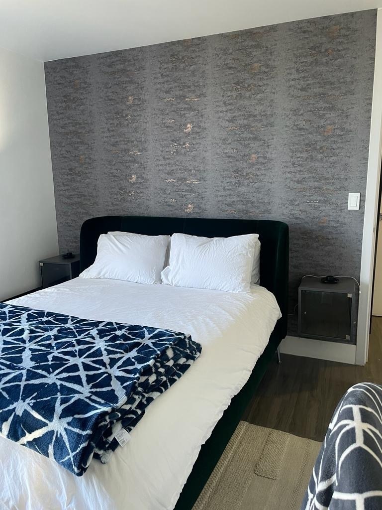 Cómodo y moderno departamento totalmente amueblado de 2 recamaras con 2 baños completos, mini split en recamara principal y sala, decorado con bello papel tapiz en todas las habitaciones.