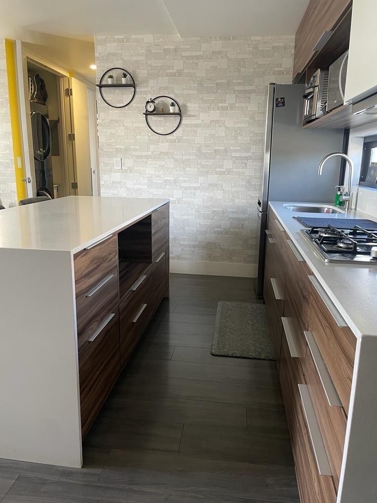 Ubicado en la zona dorada y a unos pasos de zona rio, cuenta con cocina totalmente equipada, barra de cuarzo, electrodomésticos incluidos, refrigerador, horno de microondas y estufa, así como área de lavar con mueble para blancos, lavadora y secadora.