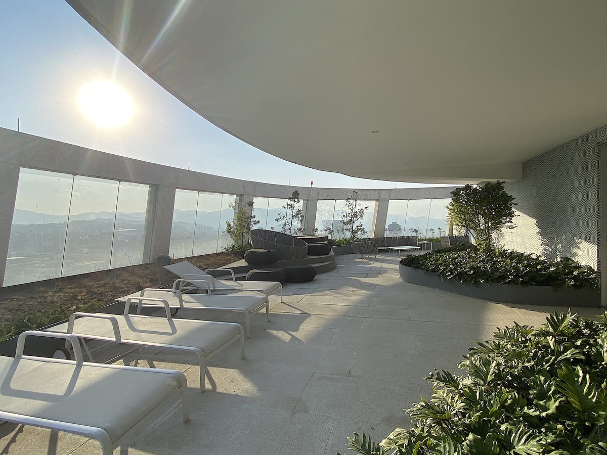Estupendo departamento de 95M2 con balcón a todo lo largo, FENOMENAL vista panorámica, ventanales de piso a techo, modernos acabados, cuenta con 1 recamara, baño y vestidor, área de sala comedor, cocina abierta, medio baño para visitas, área de lavado, 1 cajón de estacionamiento.