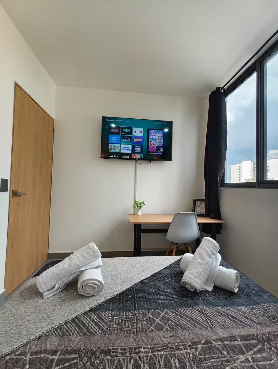 El espacio cuenta con 1 habitación con 2 camas y 1 baño completo, ideal para viajeros, estudiantes o estancias de trabajo. Su diseño moderno y funcional garantiza el máximo confort.