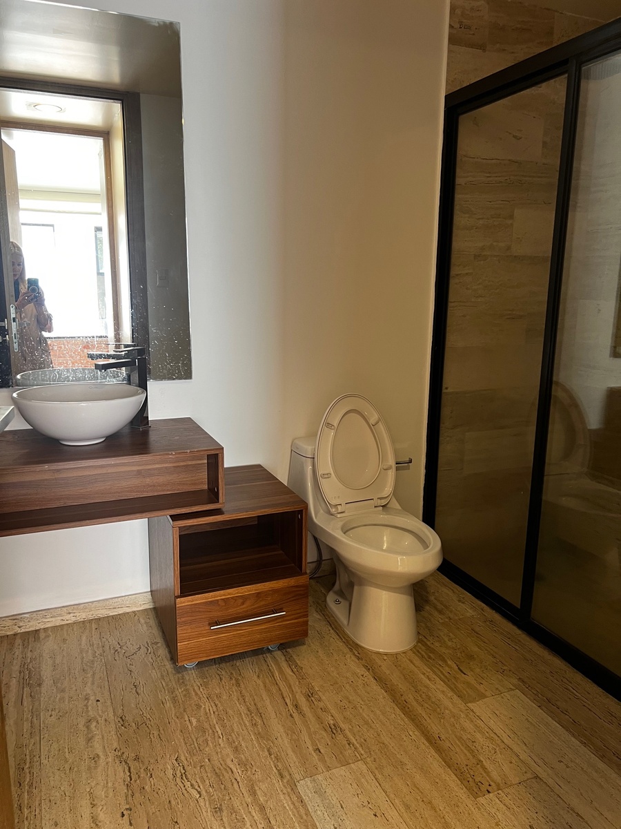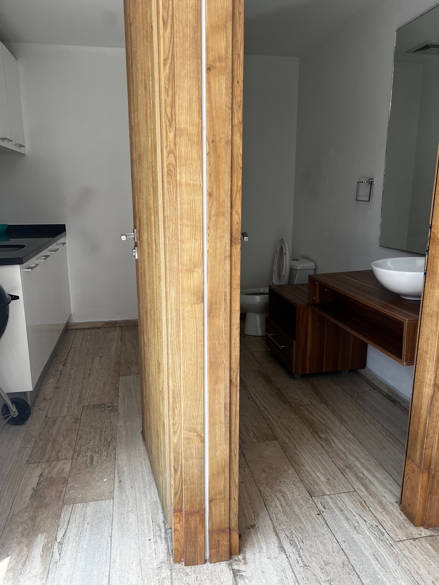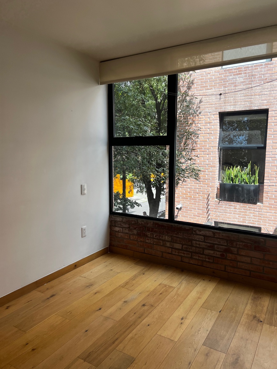 Departamento muy iluminado ,en muy buen estado de conservación, construid en 2019, moderno con acabados de calidad de una sola recamara, con baño completo, cocineta, lavandería y área abierta para sala y comedor.