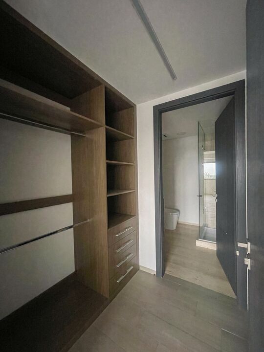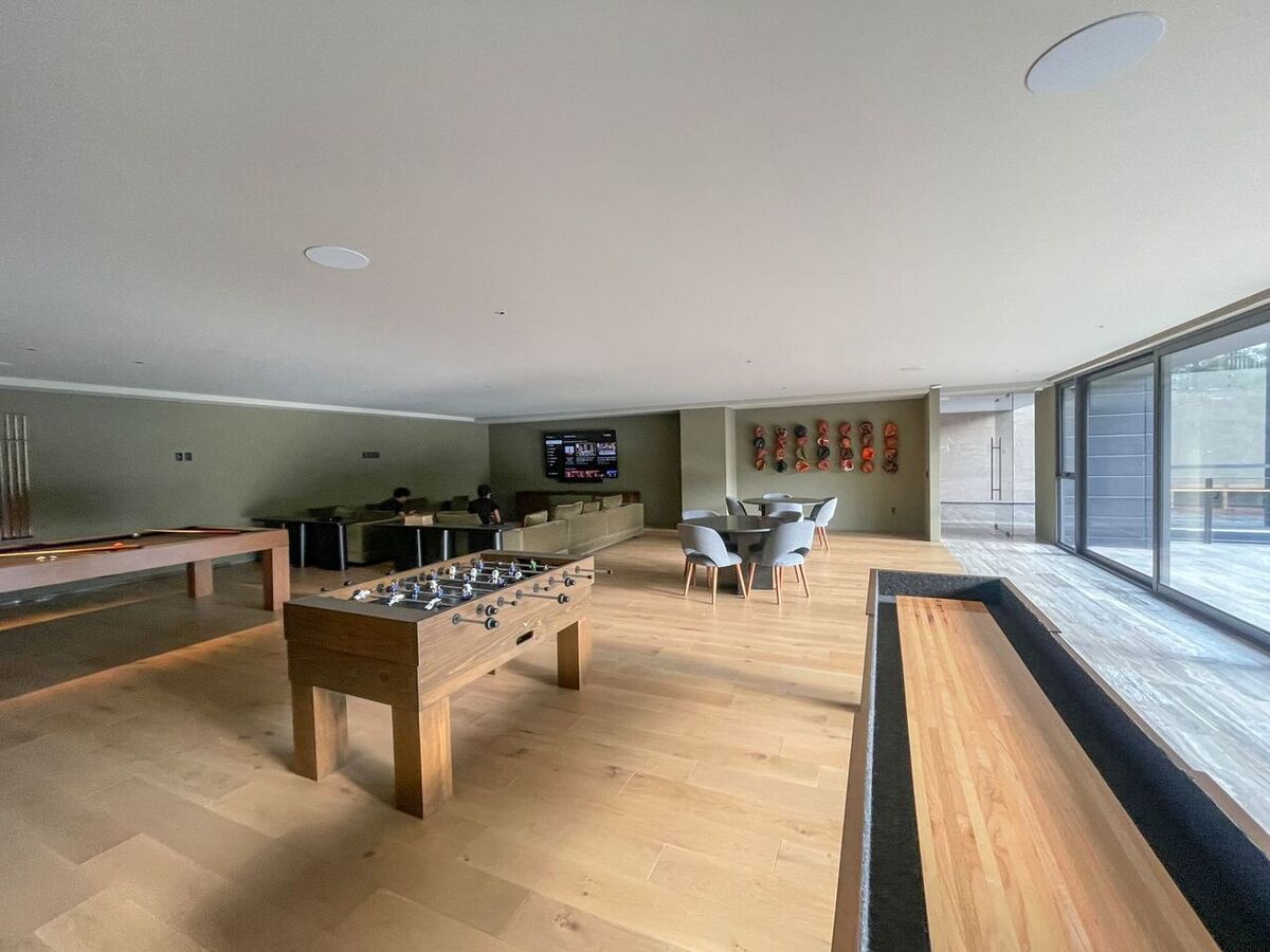 La propiedad cuenta con sala, comedor, cocina equipada con barra de mármol y cuarto de lavado. Tiene dos recámaras, cada una con baño propio; la principal con vestidor. Ventanas con vidrio doble. Incluye dos lugares de estacionamiento techado y bodega.