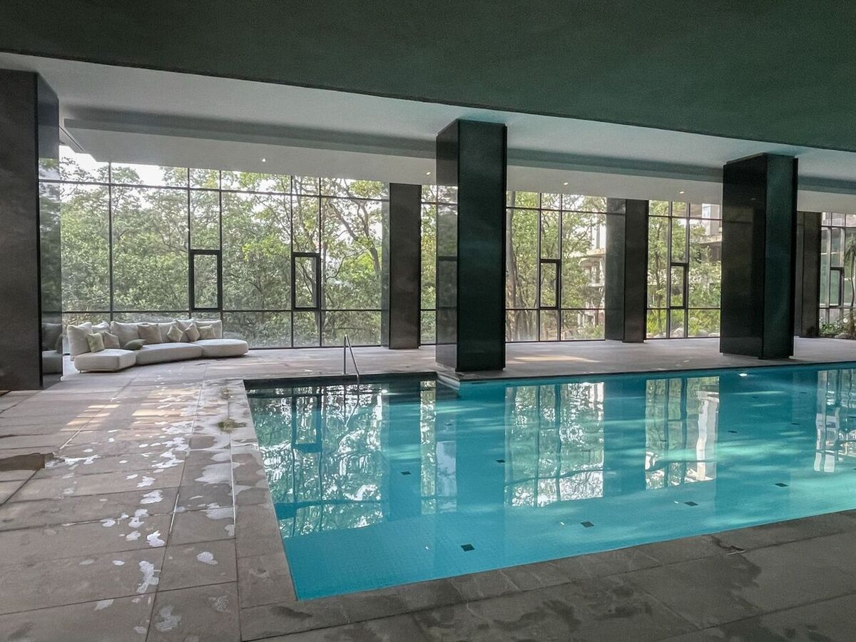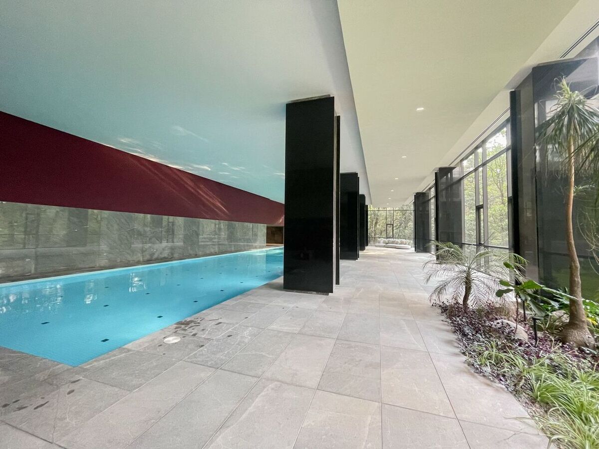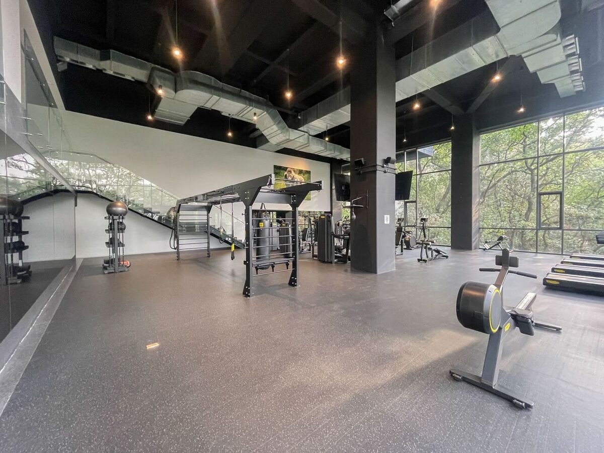 Áreas comunes y servicios: cafetería, cancha de pádel, alberca principal, alberca infantil, jacuzzi, ludoteca, salón de belleza, peluquería, jardín con senderos peatonales, gimnasio de doble altura, salón para actividades deportivas, centro de negocios y salón para jóvenes.