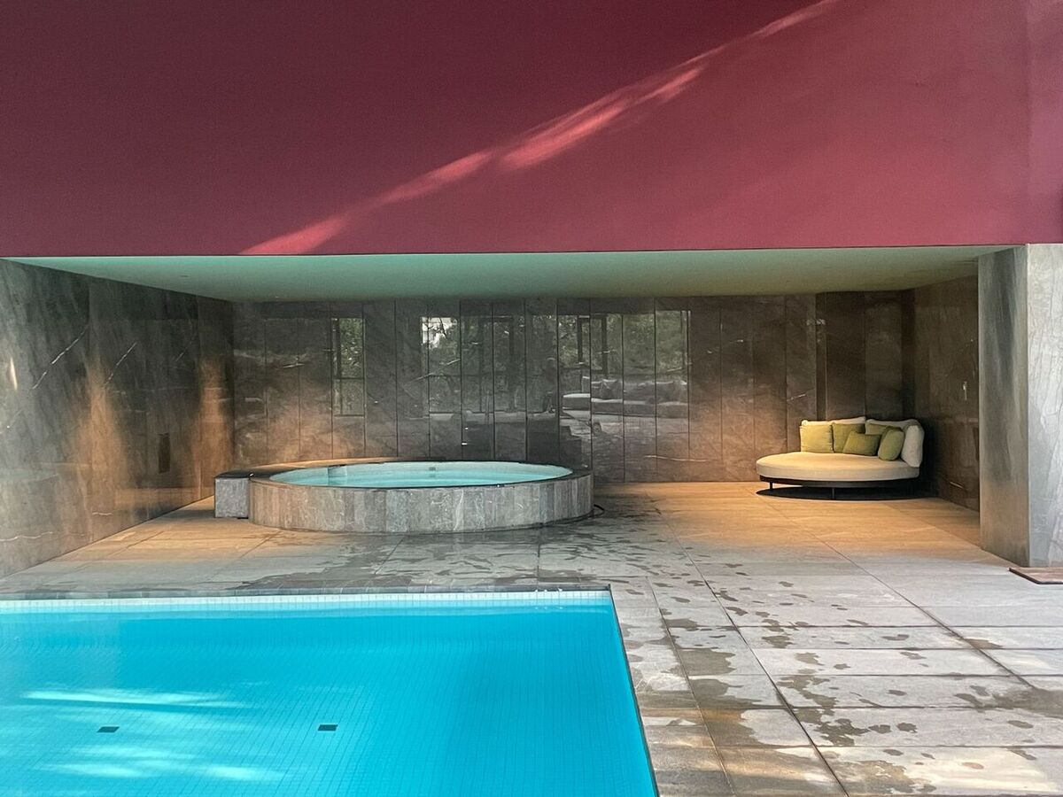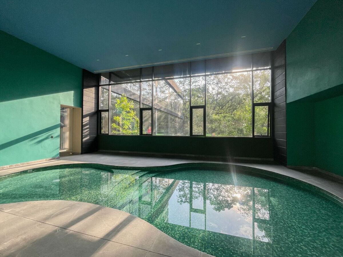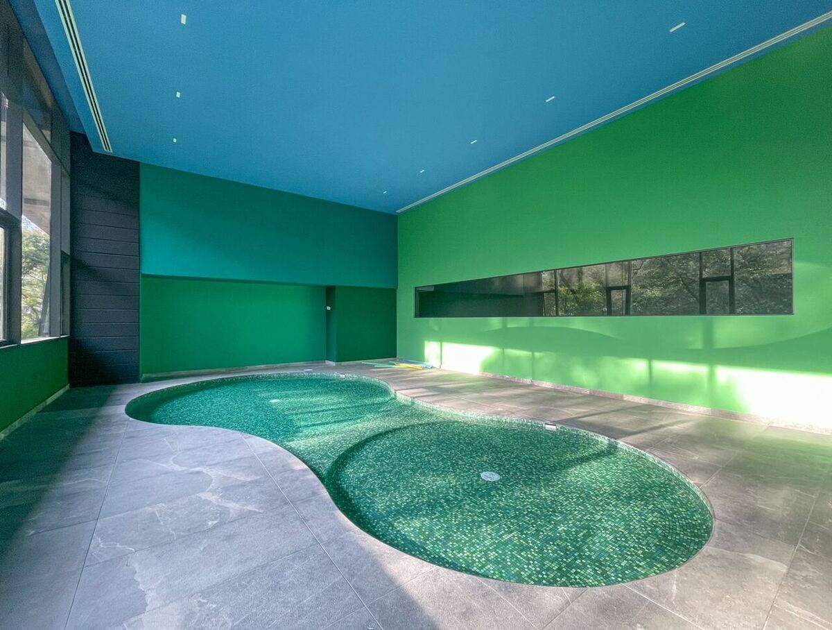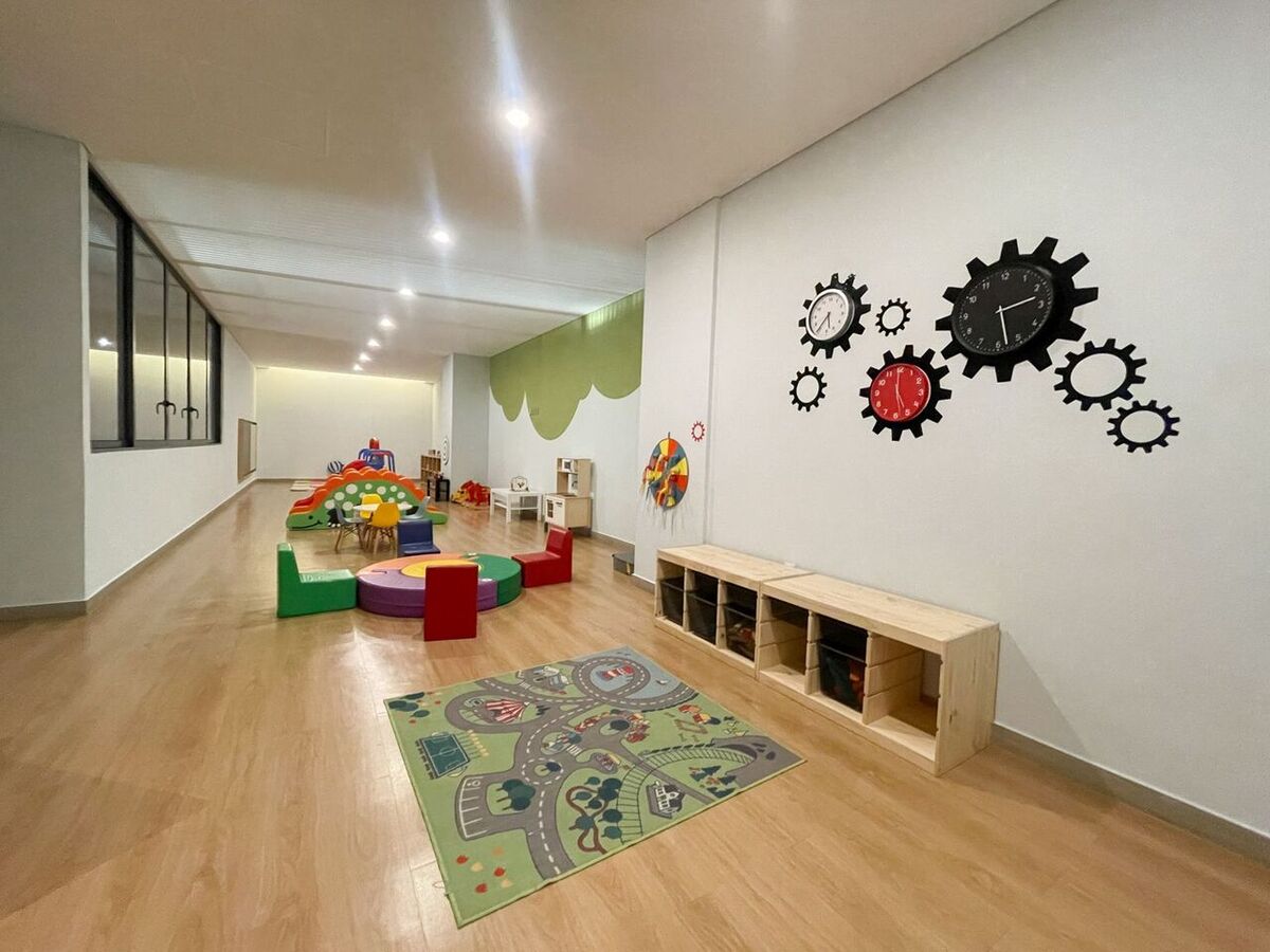 Áreas comunes y servicios: cafetería, cancha de pádel, alberca principal, alberca infantil, jacuzzi, ludoteca, salón de belleza, peluquería, jardín con senderos peatonales, gimnasio de doble altura, salón para actividades deportivas, centro de negocios y salón para jóvenes.