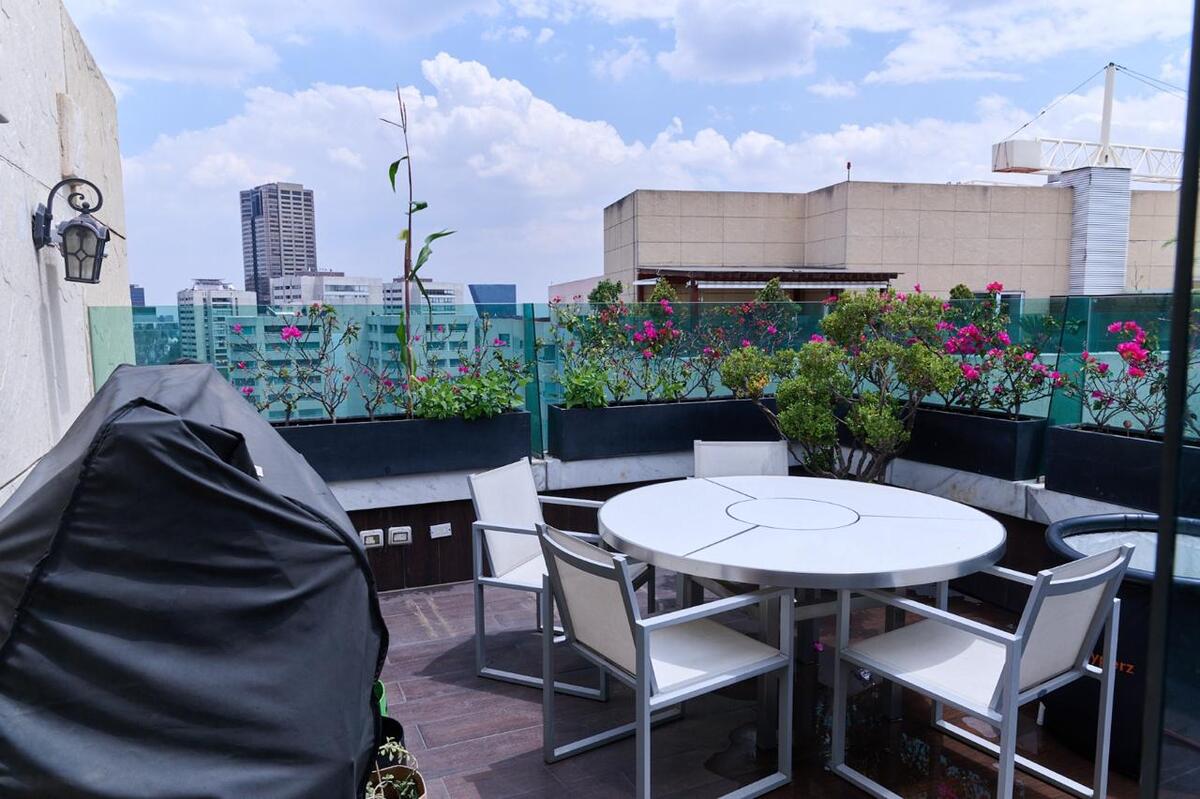 Departamento en renta en penthouse amueblado, ubicado en el corazón de la zona residencial de las Lomas de Chapultepec, cuenta con vigilancia las 24 horas, recepción, elevador que llega directamente al pent house, tiene acabados de lujo de mármol en pisos y paredes y pisos de madera de ingeniería en las recámaras, tiene dos niveles con barandales de cristal templado, las ventanas son de piso a techo y tiene aire acondicionado, la sala tiene un mueble de madera integrado, cuenta con bar con refrigerador y salida a la terraza con asador, tiene family room, la cocina integral tiene refrigerador subzero grande. Cuenta con tres recámara todas con walk in closet y baño completo, la principal con salida a la terraza, la recámara dos tiene tina de baño y la recámara tres tiene estudio o cuarto de juegos. Entre otras amenidades tiene alberca con jacuzzi, vapor, spa y salón de masajes, ludoteca, jardín con juegos infantiles, casa club, cafetería y salón de juegos.