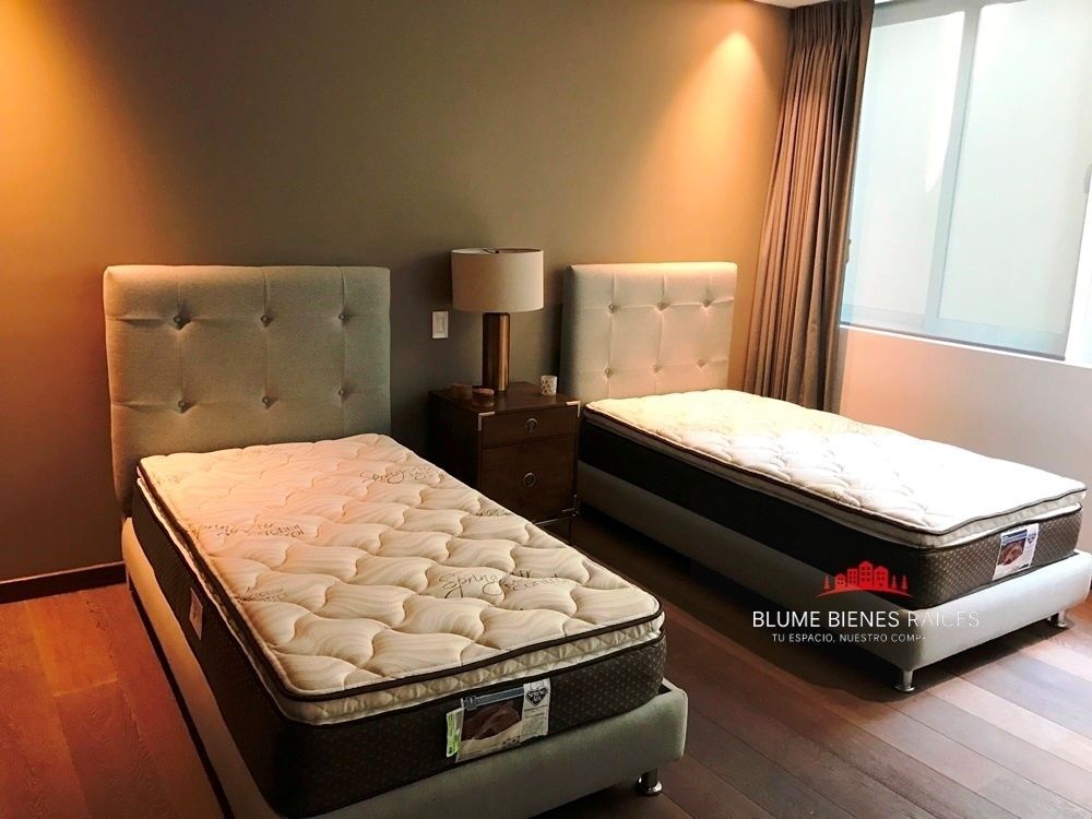 Renta moderno departamento amueblado, en edificio pequeño. Sala comedor, cocina integral abierta, área de lavado. Recamara principal con baño, closet y salida a pequeño balcón, segunda recamara con closet y baño, agradable área de televisión. Bodega.