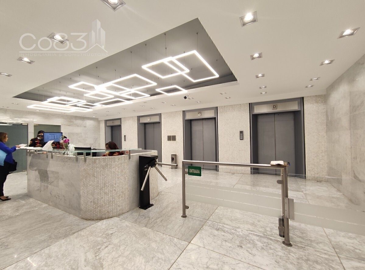 Otras características: Sistema contra incendio y escaleras de emergencia exteriores, Claros de gran tamaño sin columnas o paredes intermedias, Vestíbulo principal de mármol y granito importado, Cisterna y tanque elevado con capacidad de 100,000 litros, Subestación eléctrica de 500KVA.