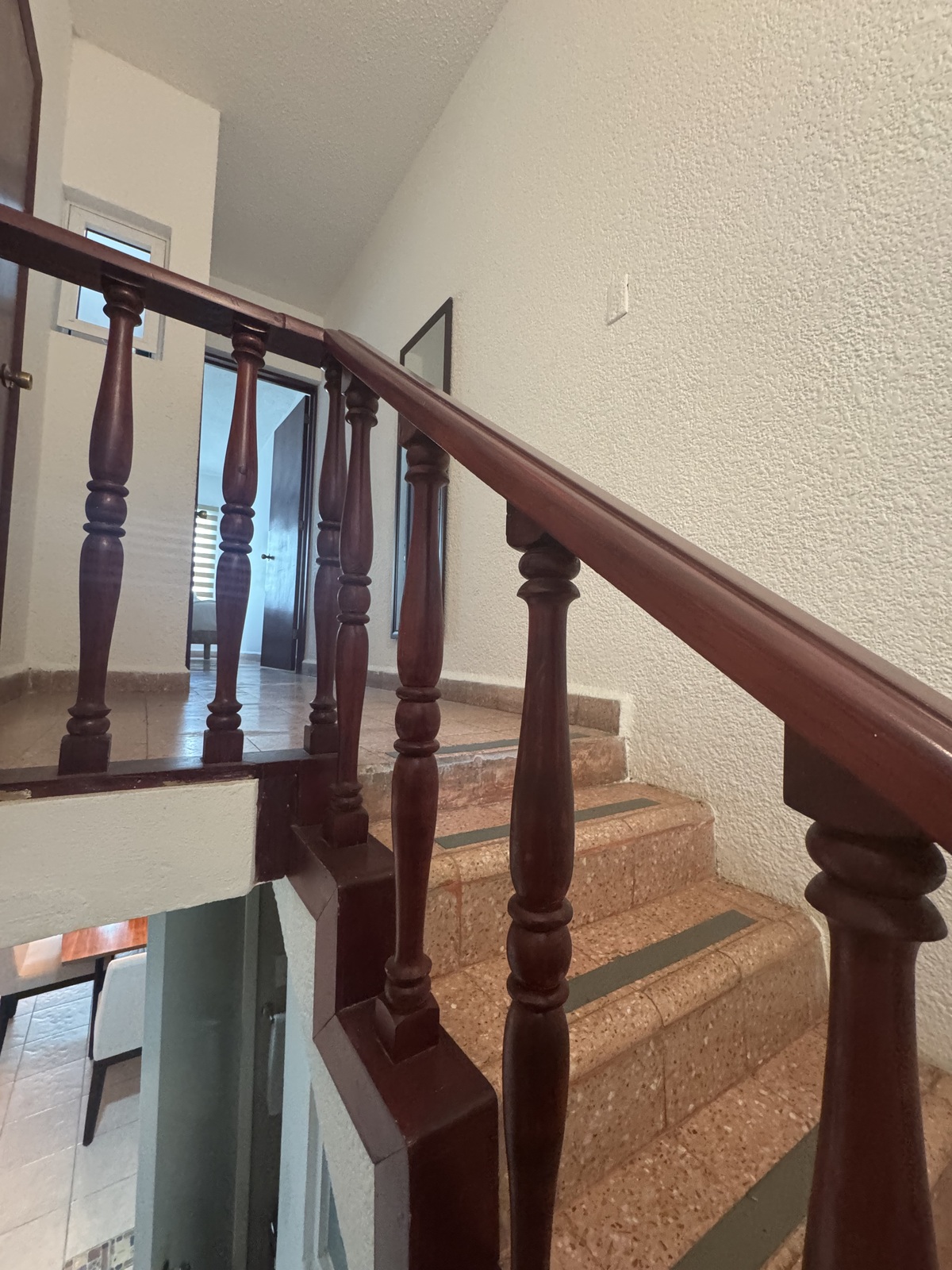 La casa comparte el predio con otras 2 casas que son totalmente independientes a la misma, y que solamente comparten la entrada principal de la calle