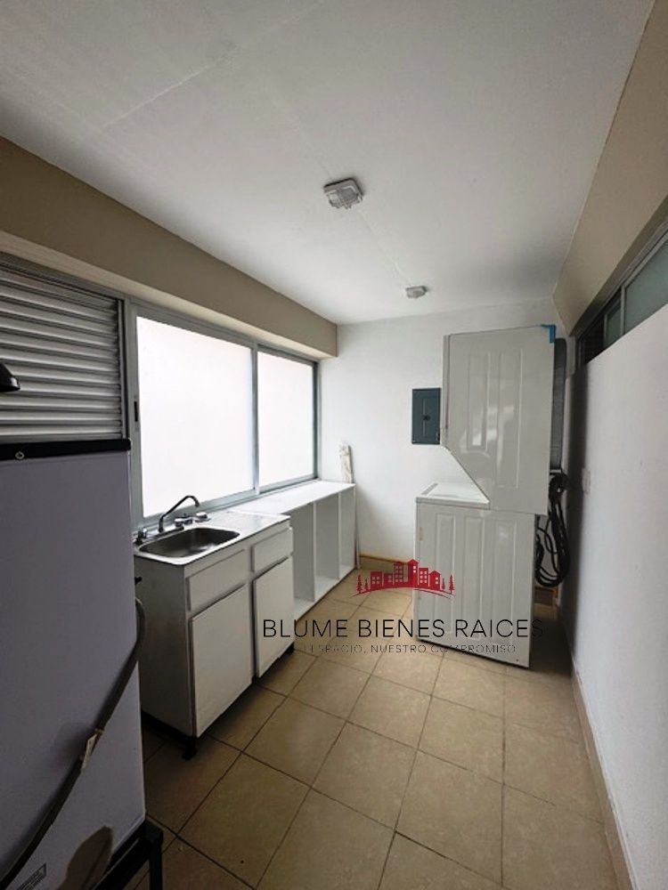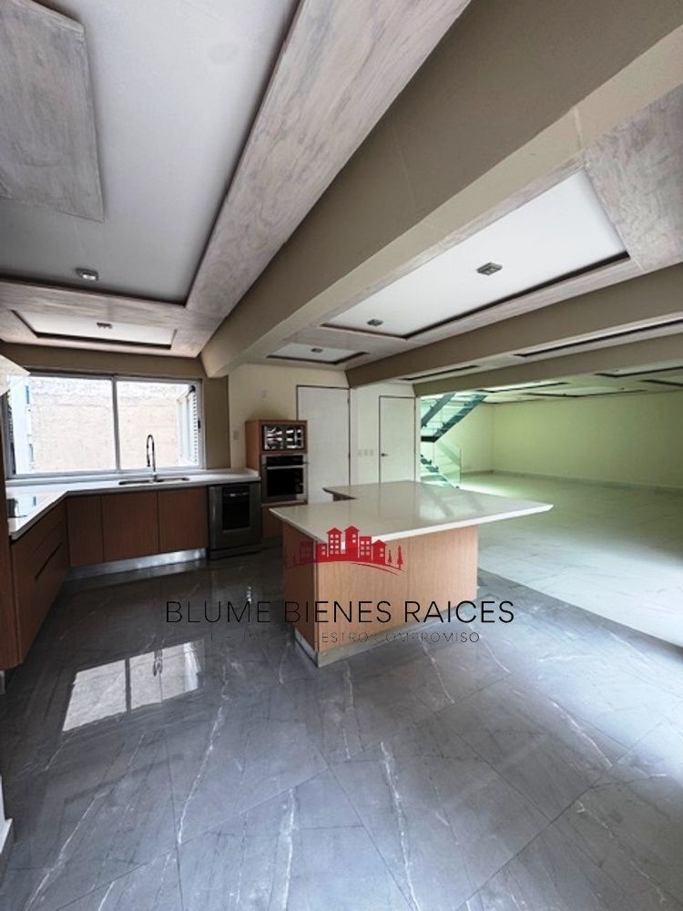 Planta Baja: Se distribuye cómodamente amplia estancia sala comedor, una cocina social con una isla ( refrigerador de vinos), área de servicio y un baño completo.