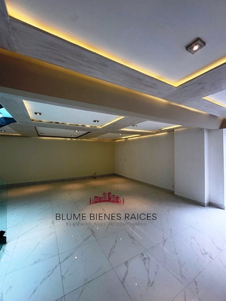 Planta Baja: Se distribuye cómodamente amplia estancia sala comedor, una cocina social con una isla (refrigerador de vinos), área de servicio y un baño completo.