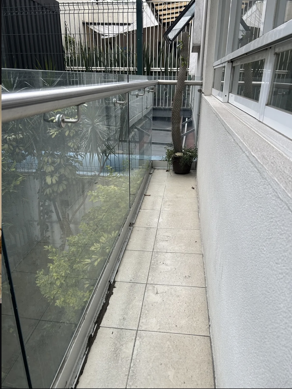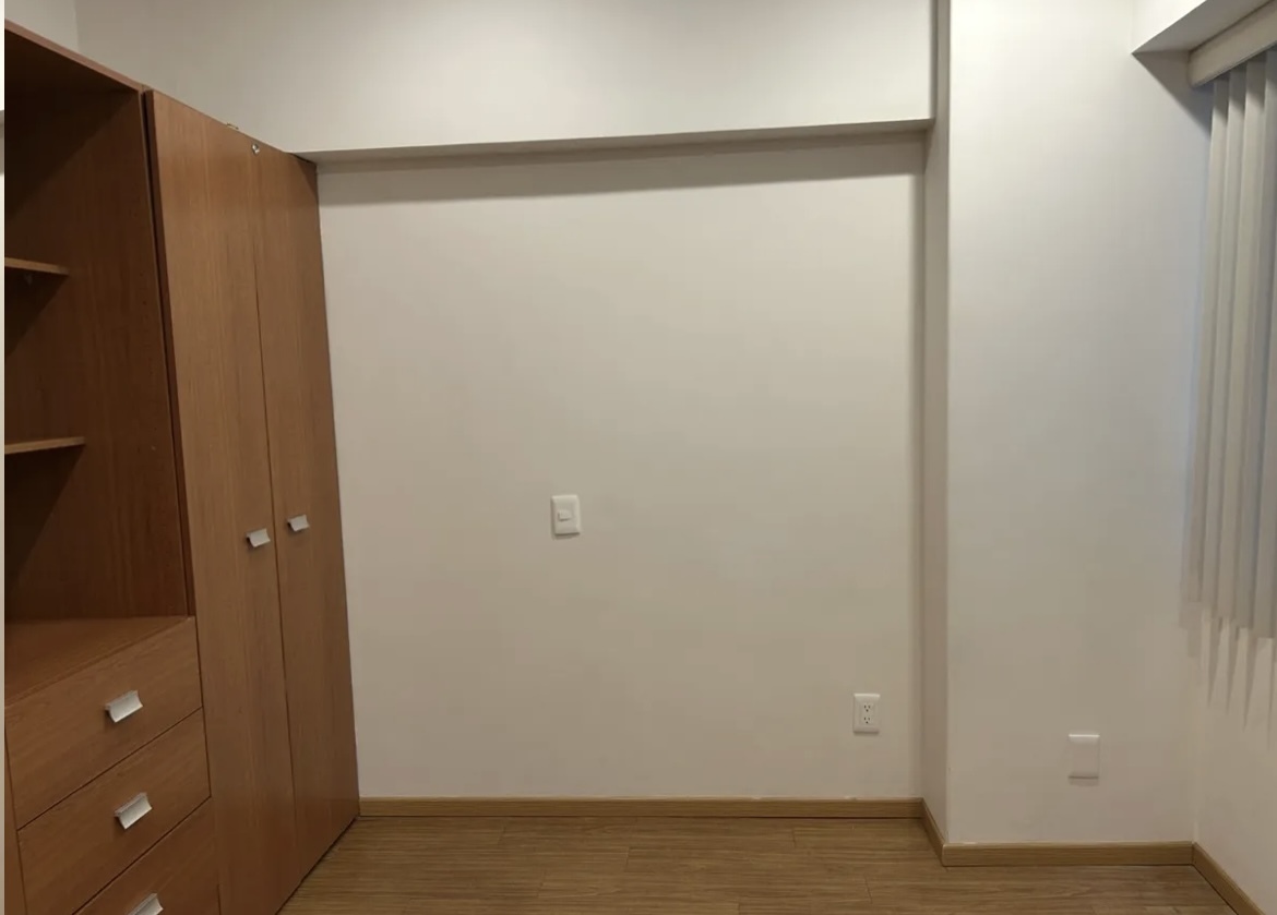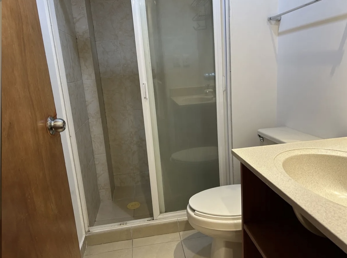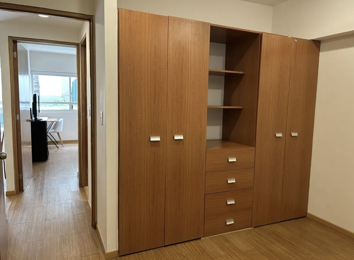 Departamento amueblado, primer piso, 77 m2 sup, 2 recámaras, 1 baño, sala y comedor, cocina integral abierta con barra, área de lavado, baño de visitas y balcón.