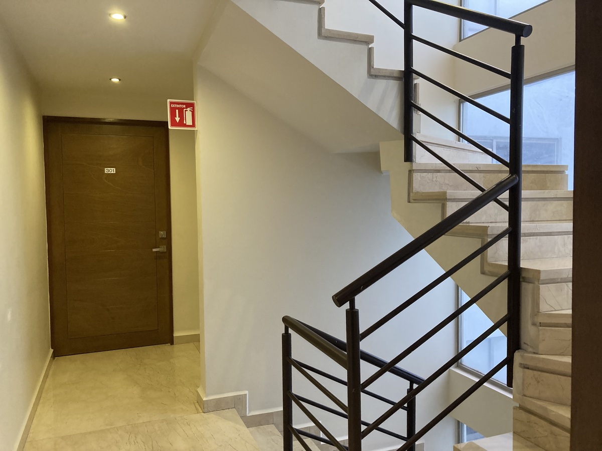 Un departamento por piso, vista arbolada.