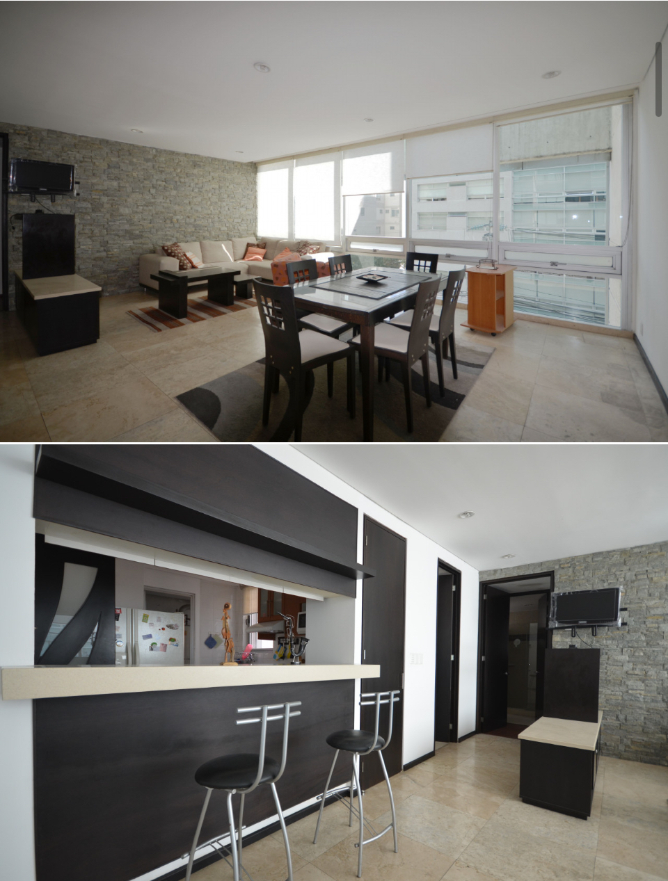 EXCELENTE DEPARTAMENTO IMPECABLE Y AMUEBLADO MODERNO DE UNA RECÁMARA Y ESTUDIO CON ESCRITORIO DE TRABAJO Y SOFACAMA, DOS BAÑOS, ESTÁNCIA SALA COMEDOR, COCINA EQUIPADA Y ALACENA, ÁREA DE LAVADO CON LAVADORA Y SECADORA.