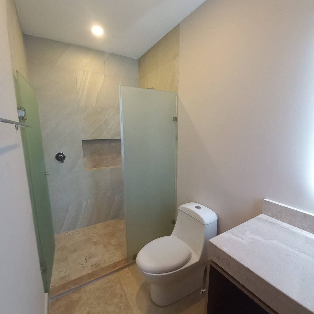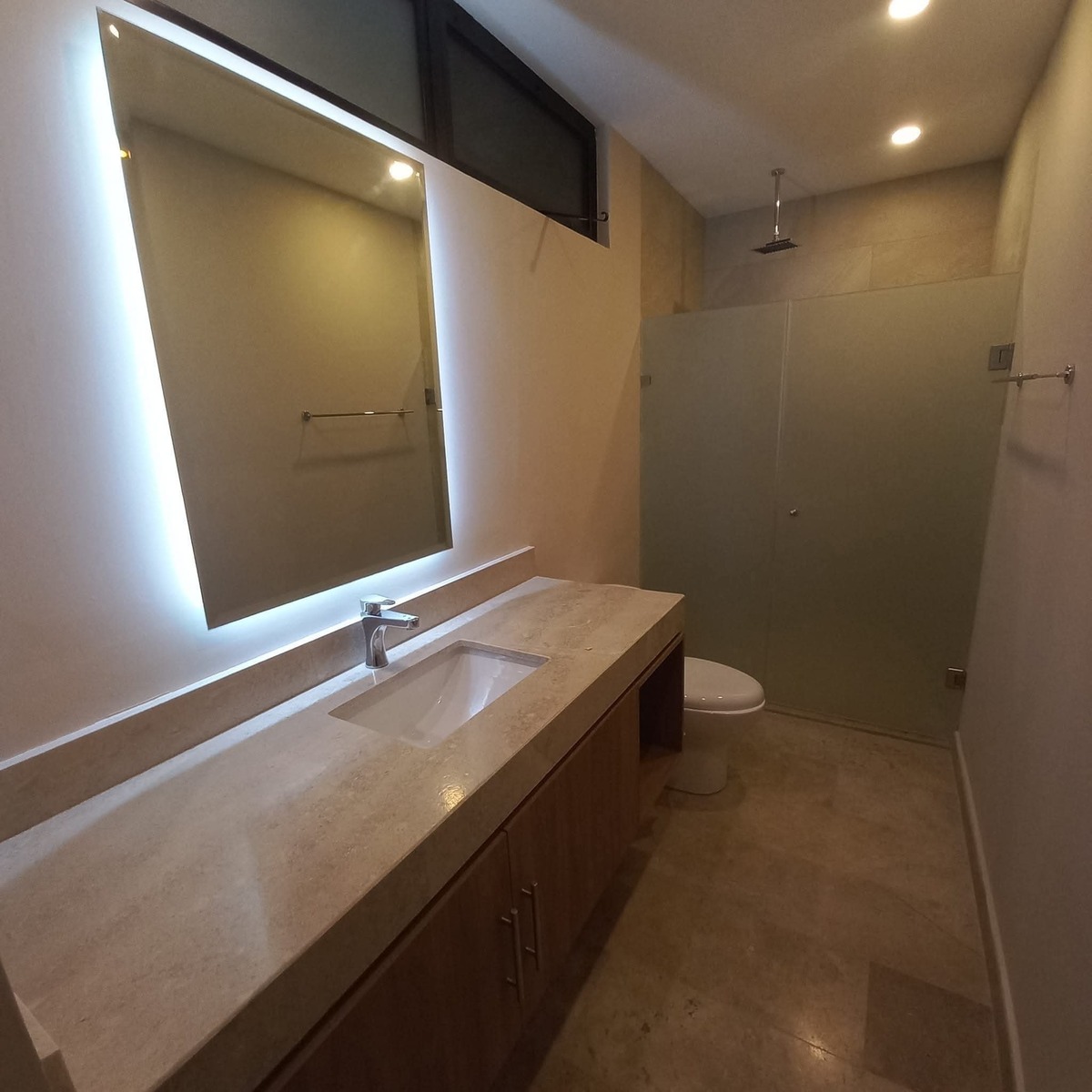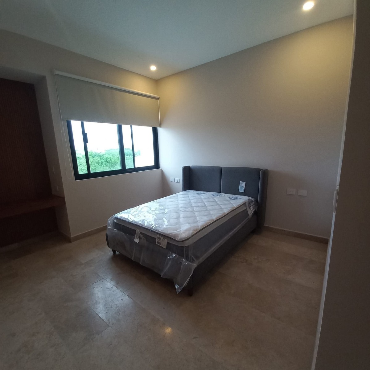 Recámara principal con cama king size, baño completo muy amplio closet vestidor, aire acondicionado, persianas y mosquiteros.