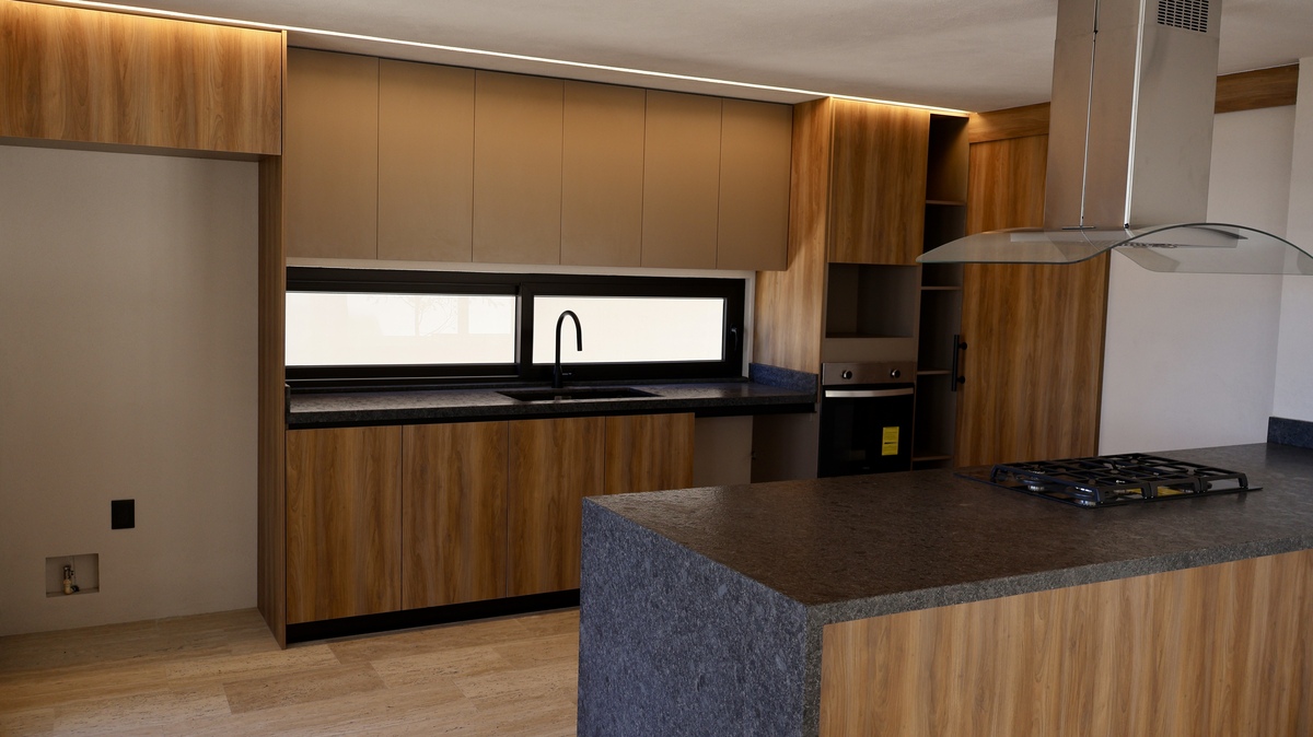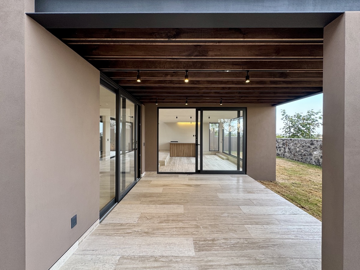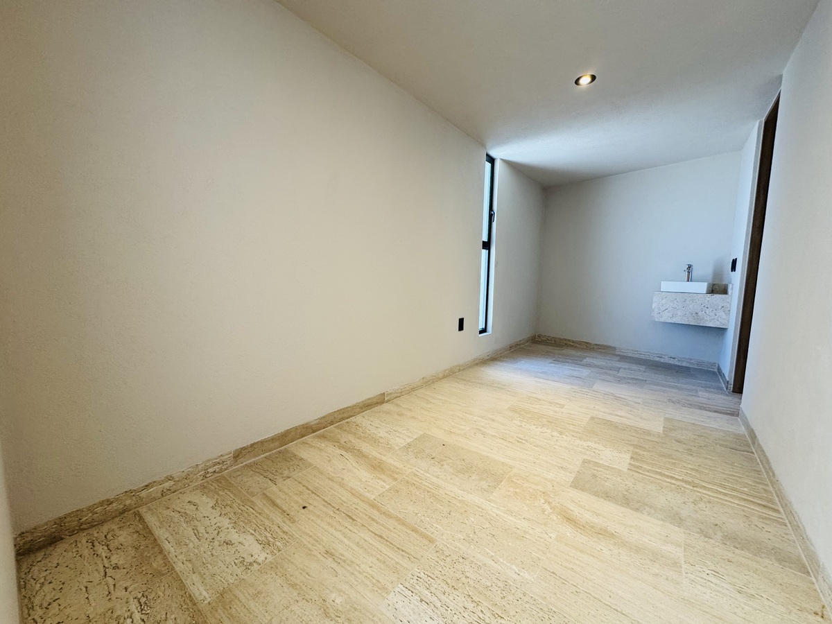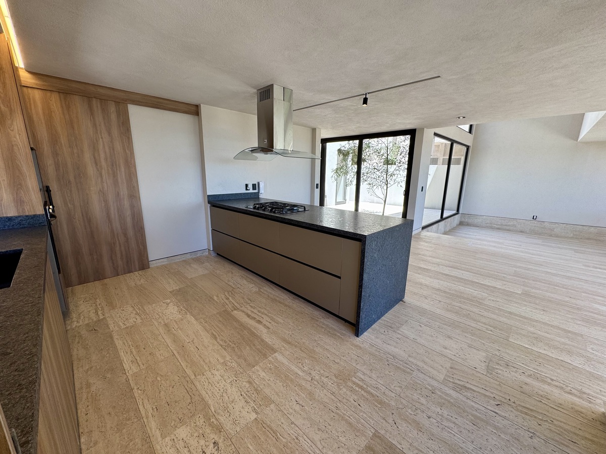 PB: Estacionamiento para 3 autos, estudio (o 4ta recámara), baño completo, sala a doble altura, bar, comedor, cocina equipada con alacena, terraza techada, patio interior, bodega y jardín.