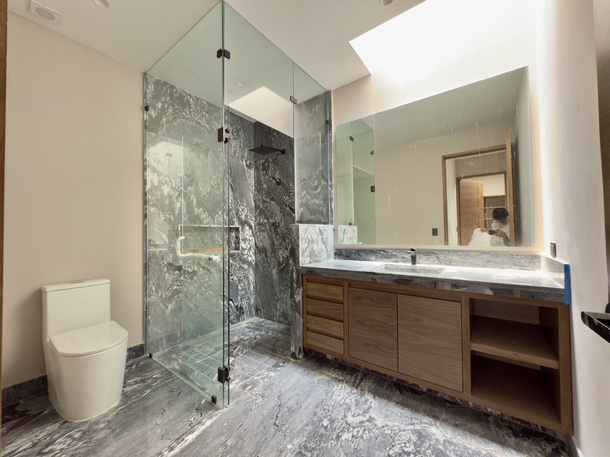 Acabados: Mármol y fachada italiana, carpintería en nogal, vidrios templados