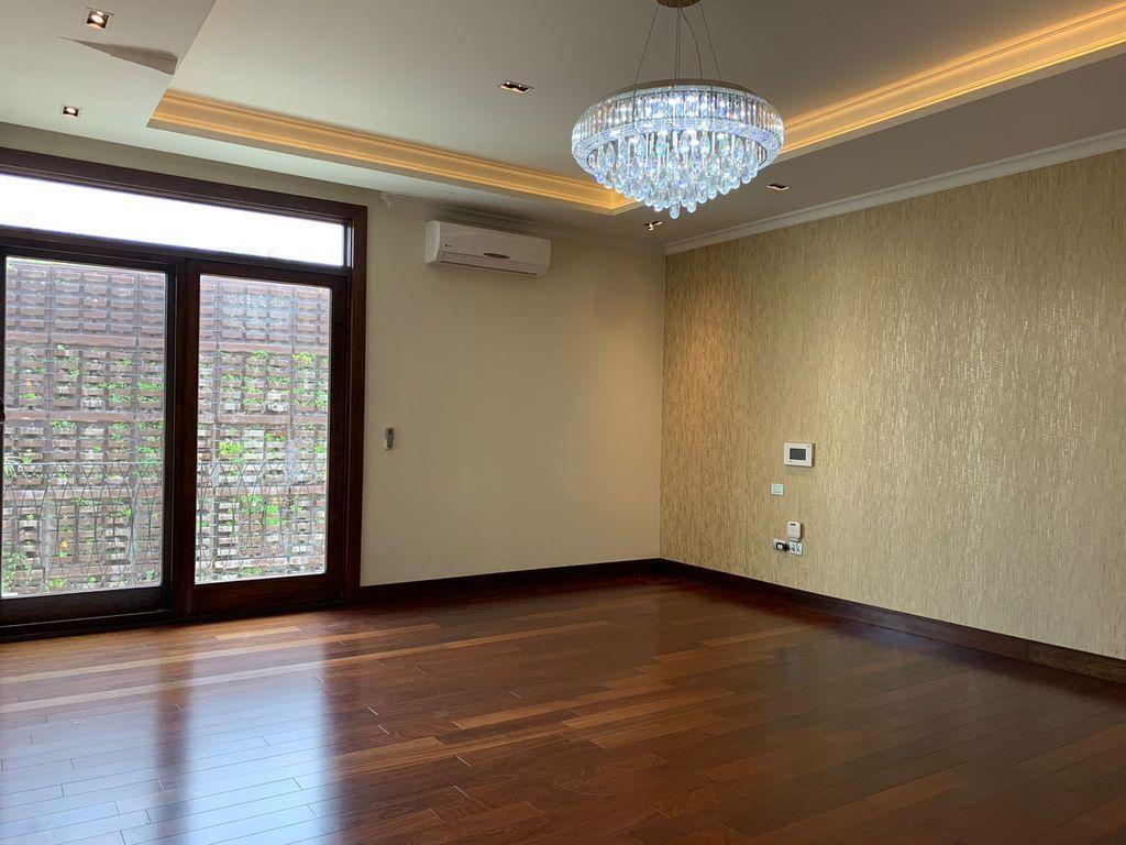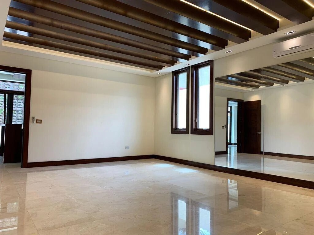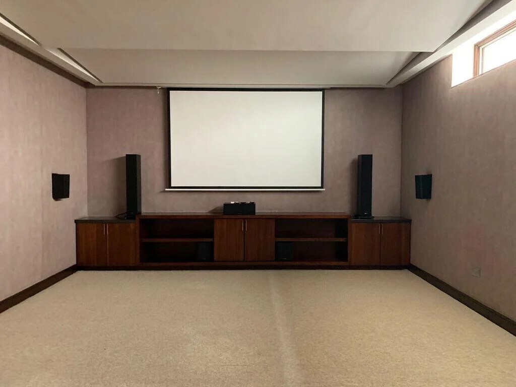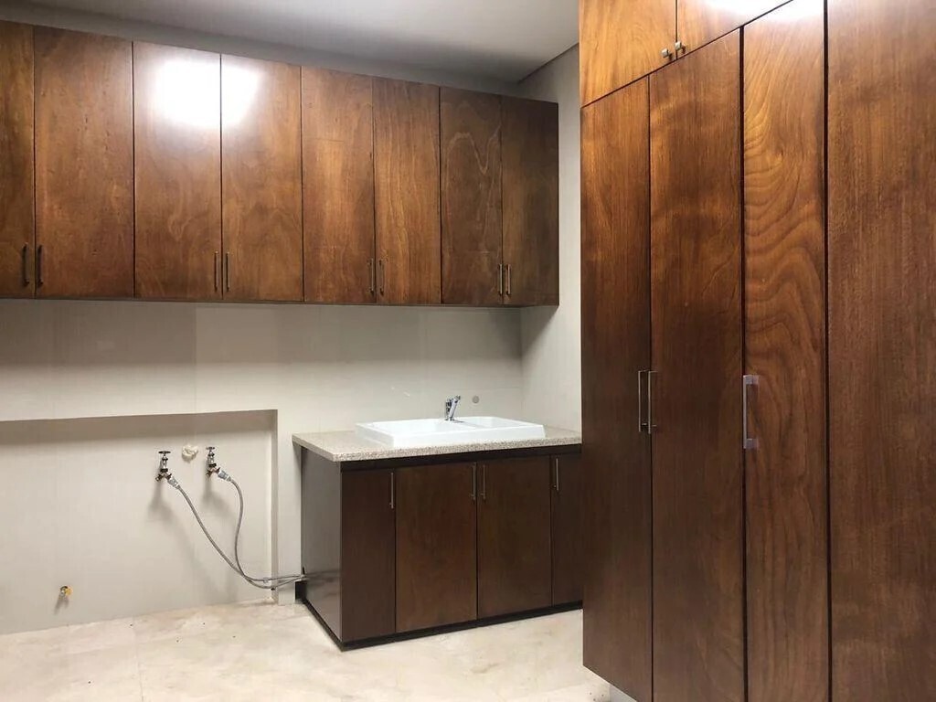 Medio sótano para 4 autos, 2 cuartos de servicio que comparten baño completo y una sala de estar. Salón de proyecciones con baño completo.