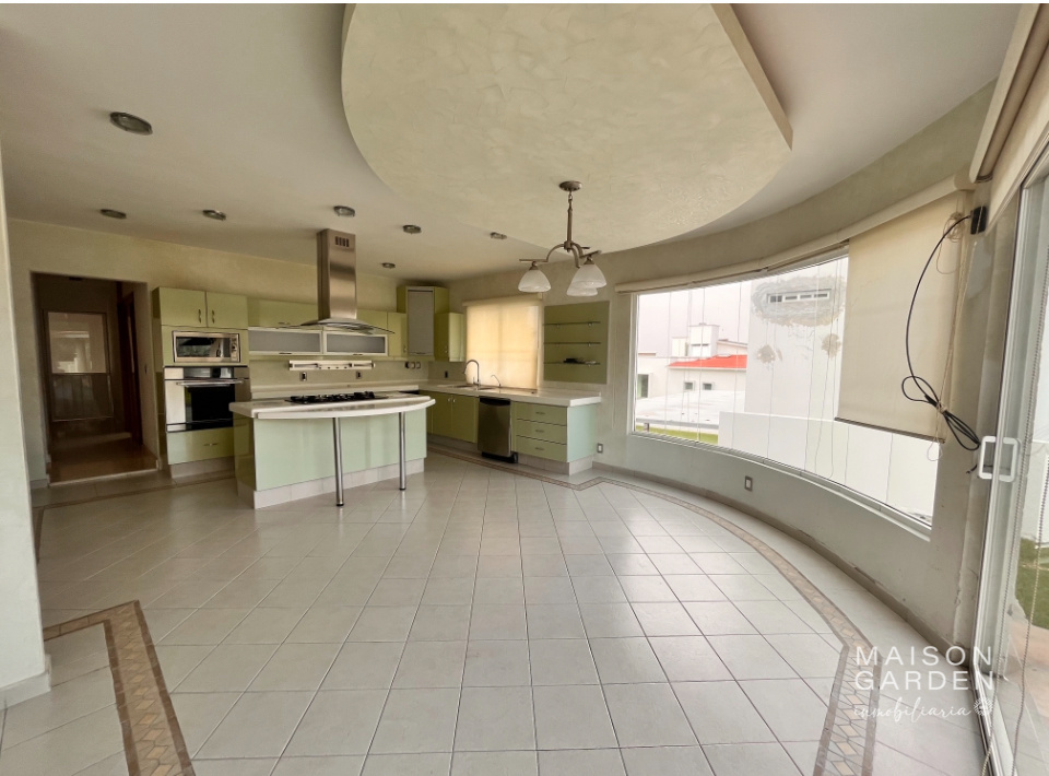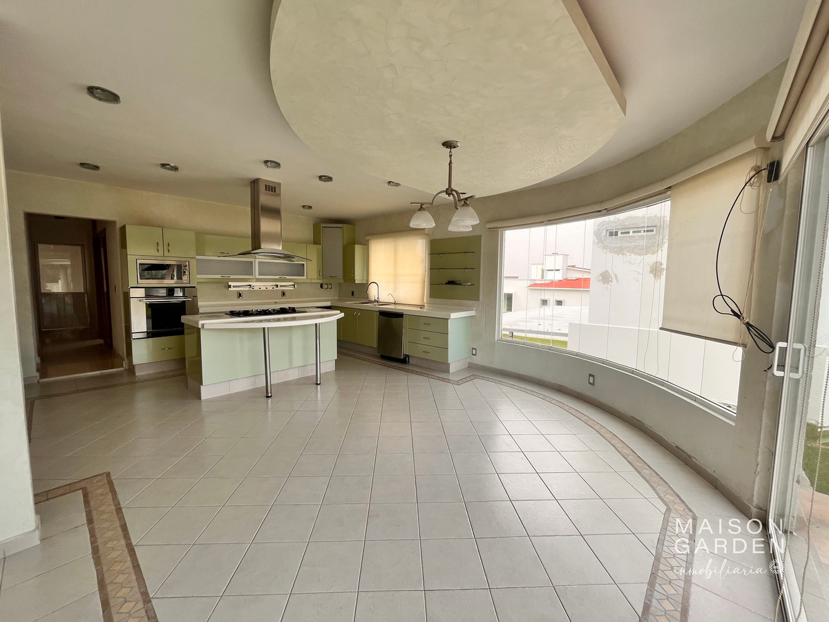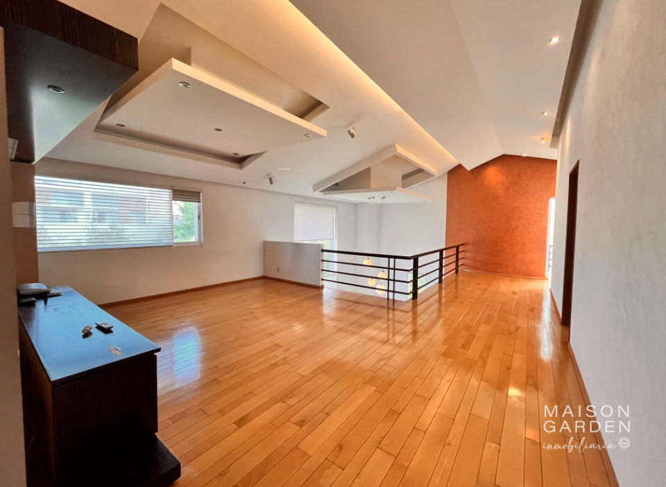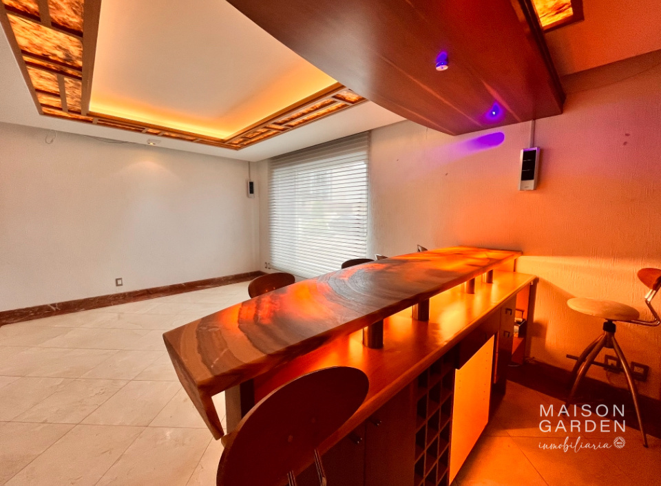 En la planta baja destaca un elegante recibidor, estudio, baño de visitas, clóset de blancos, sala a doble altura, comedor, salón de juegos con bar, amplia cocina con antecomedor y despensa, además de cuarto de servicio, área de lavado y patio de tendido.