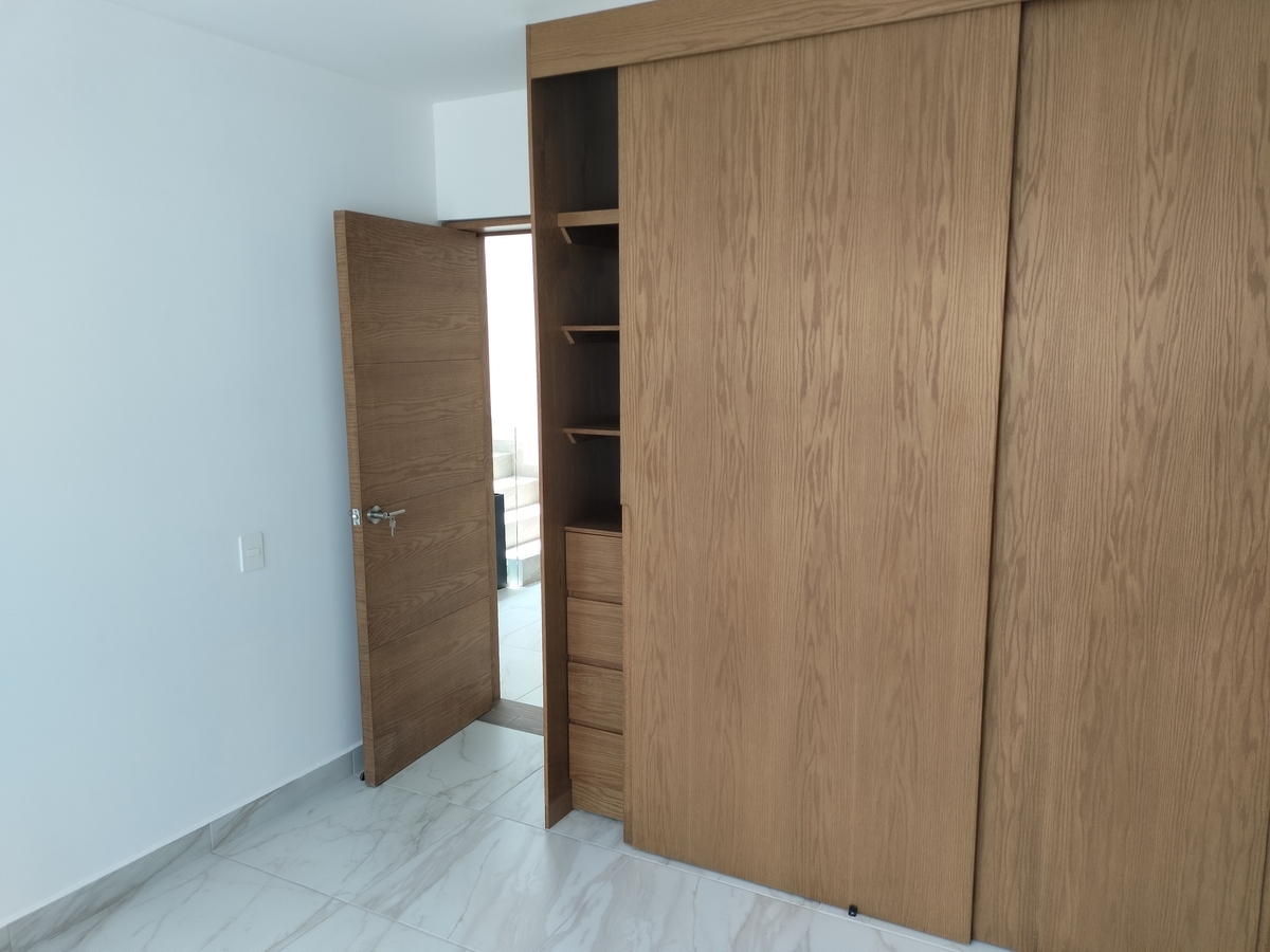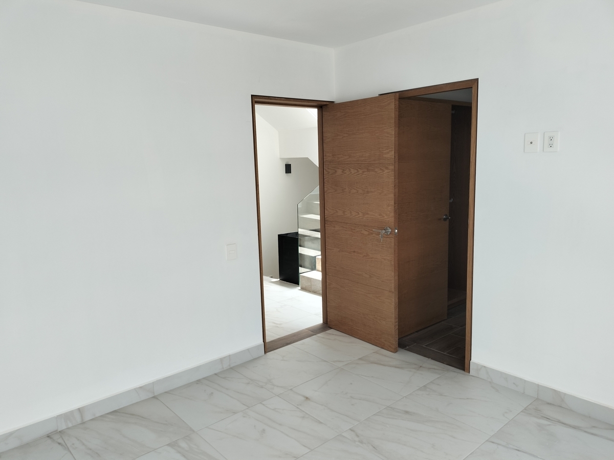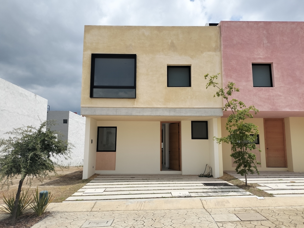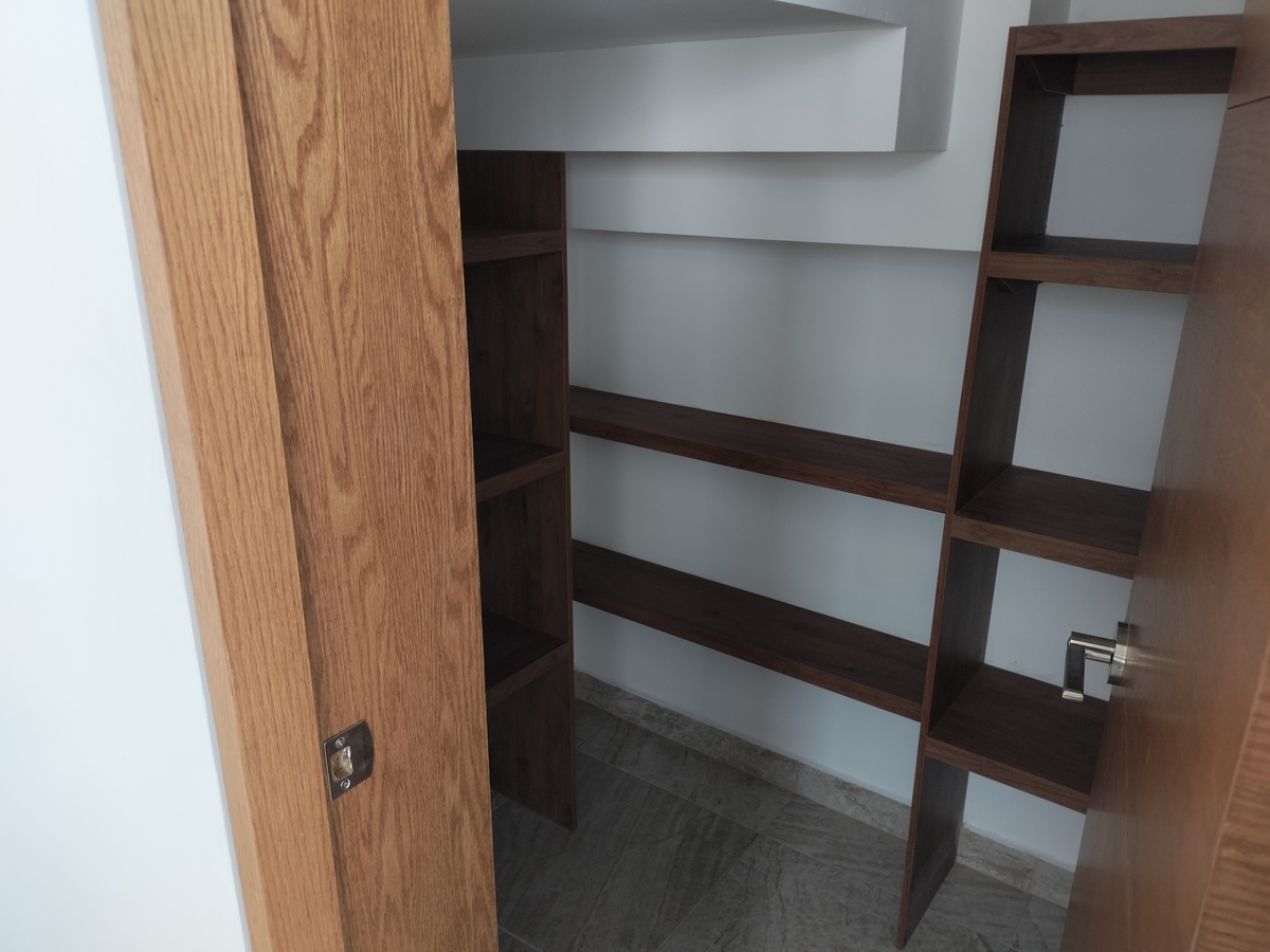 Sala, comedor, cocina, barra con cubierta de cuarzo, patio de servicio, cochera para 2 autos, 1/2 baño, cuarto de servicio y alacena amplia.