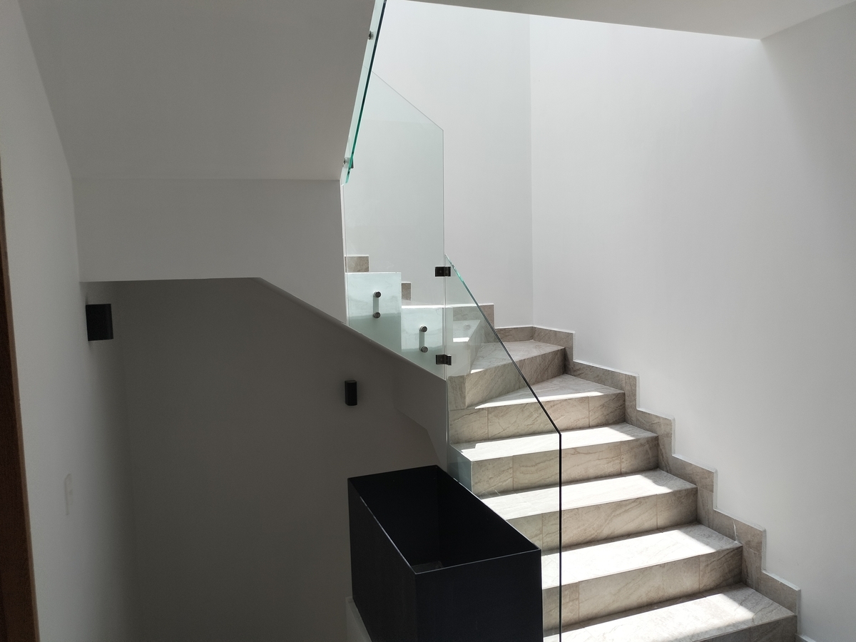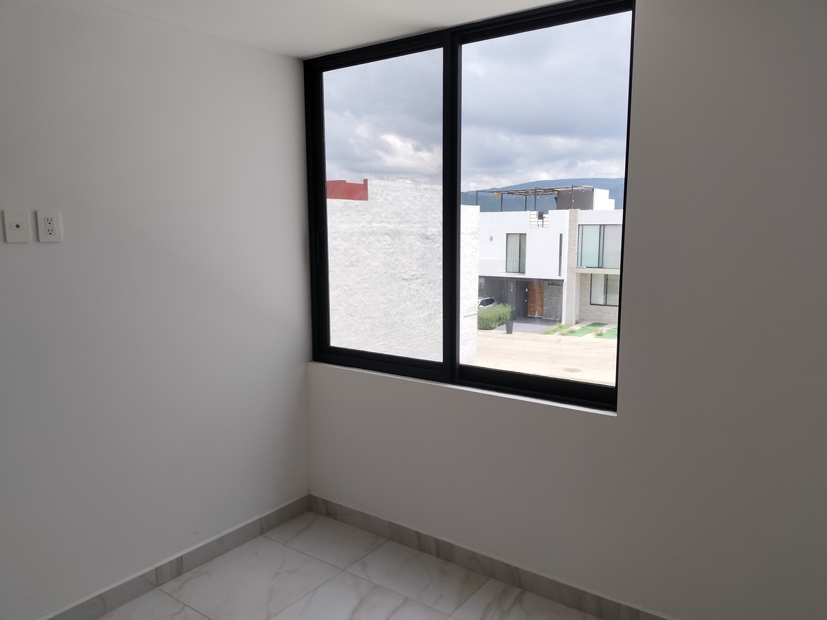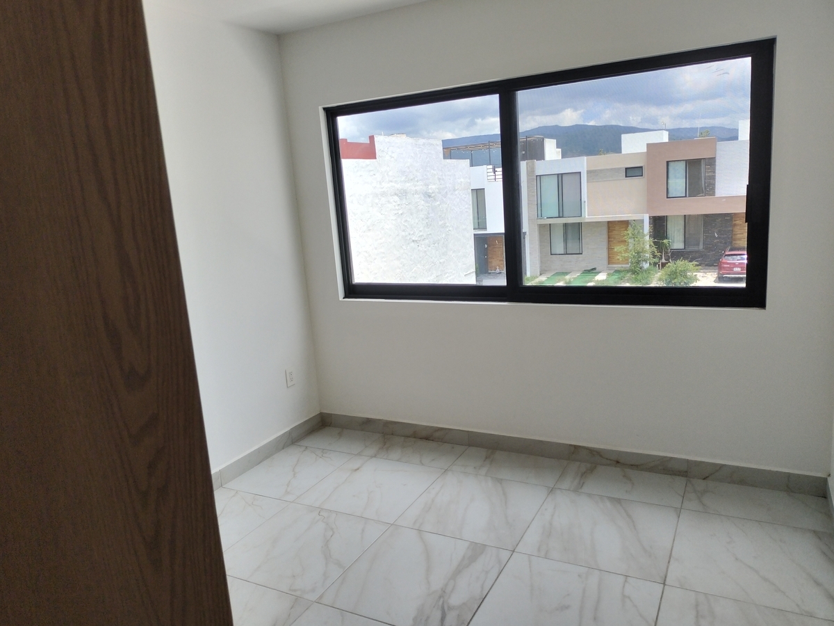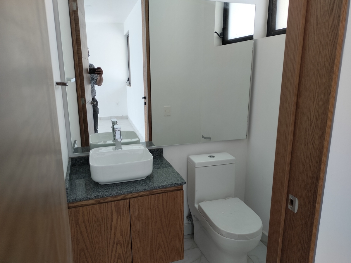 Sala, comedor, cocina, barra con cubierta de cuarzo, patio de servicio, cochera para 2 autos, 1/2 baño, cuarto de servicio y alacena amplia.