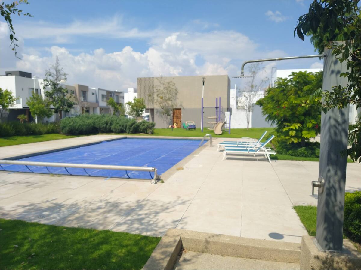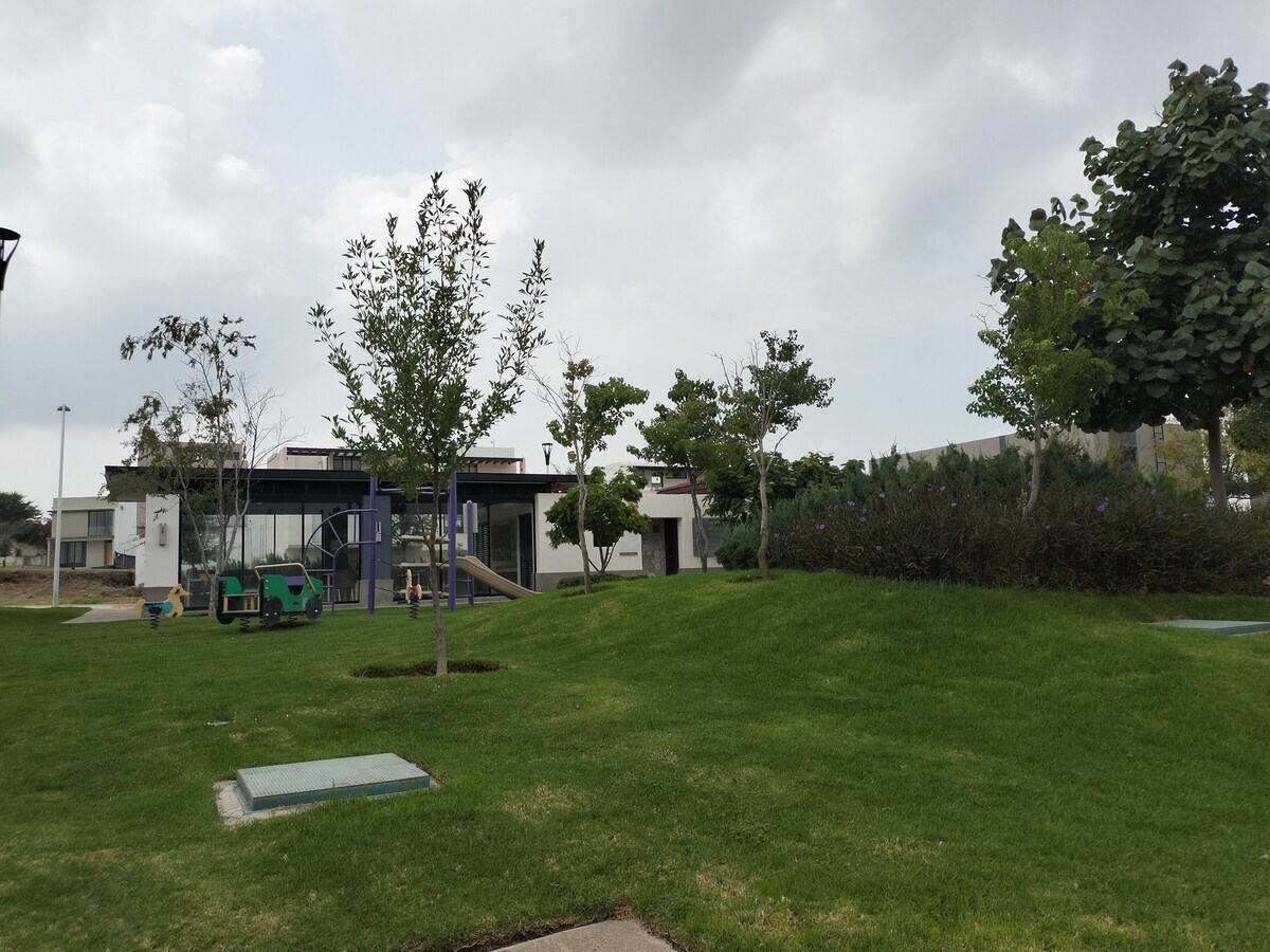 En la mejor zona del sur de Guadalajara cercana a las Plazas Outlet. Cuenta con jardines con lago con peces y patos.