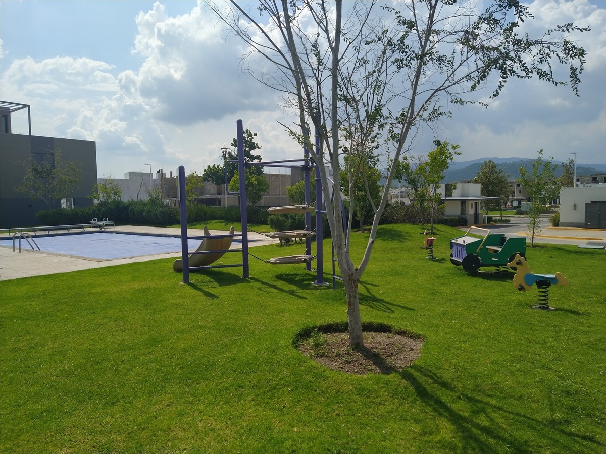 El fraccionamiento tiene vigilancia 24 hora, casa club con alberca, terraza y gimnasio.