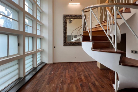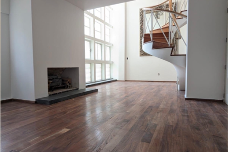 En siguiente nivel (hacia abajo) nos recibe un mini estudio ideal para TV, yoga, area de trabajo.
