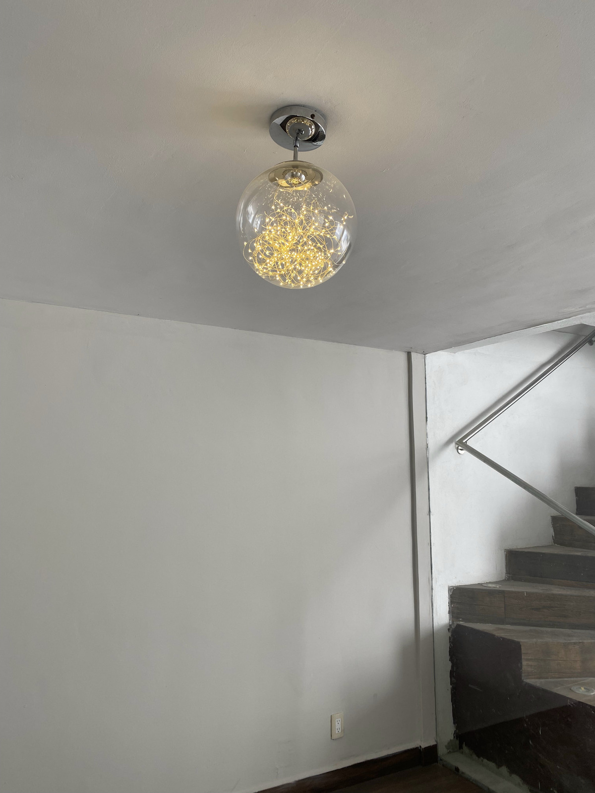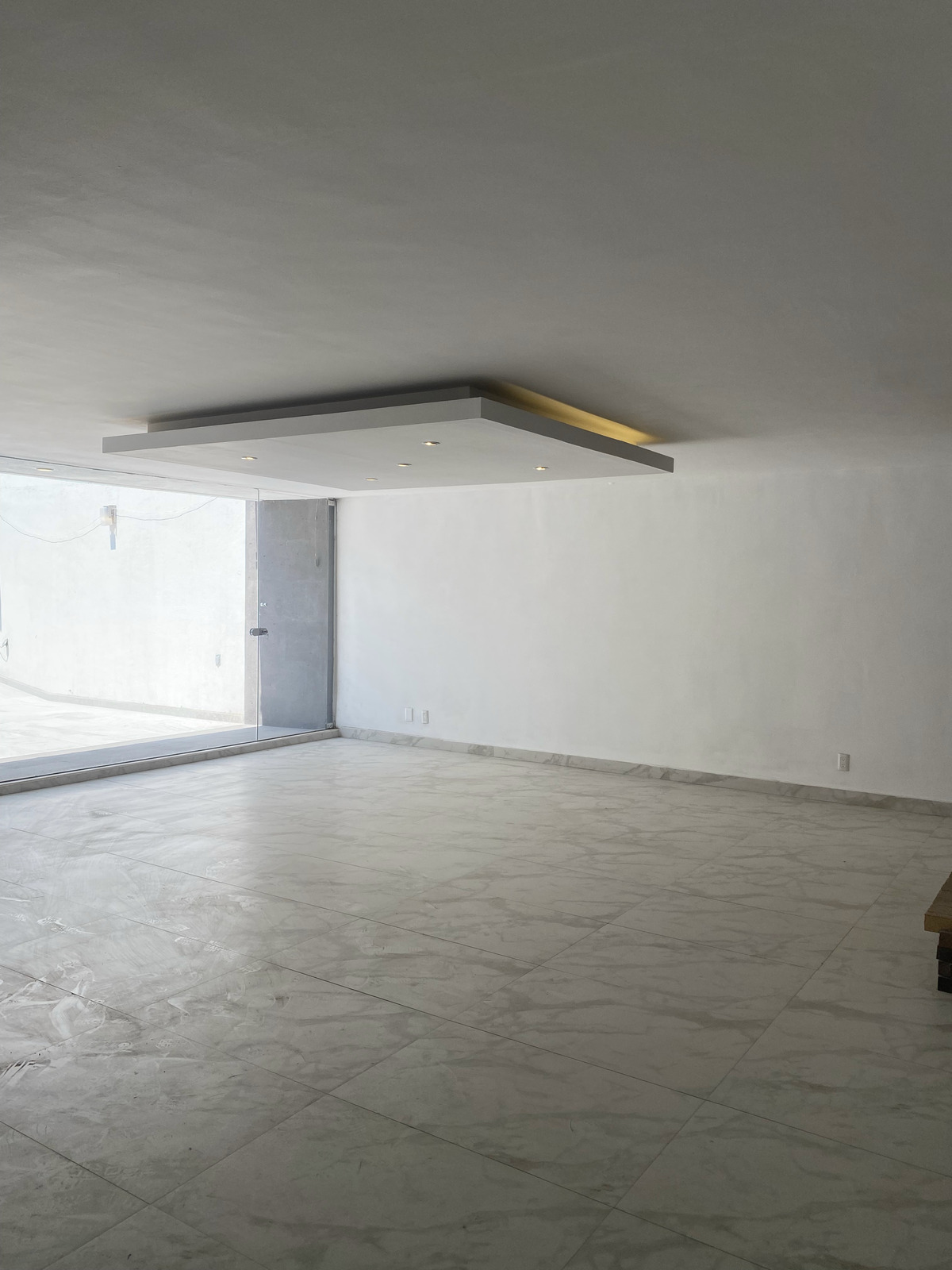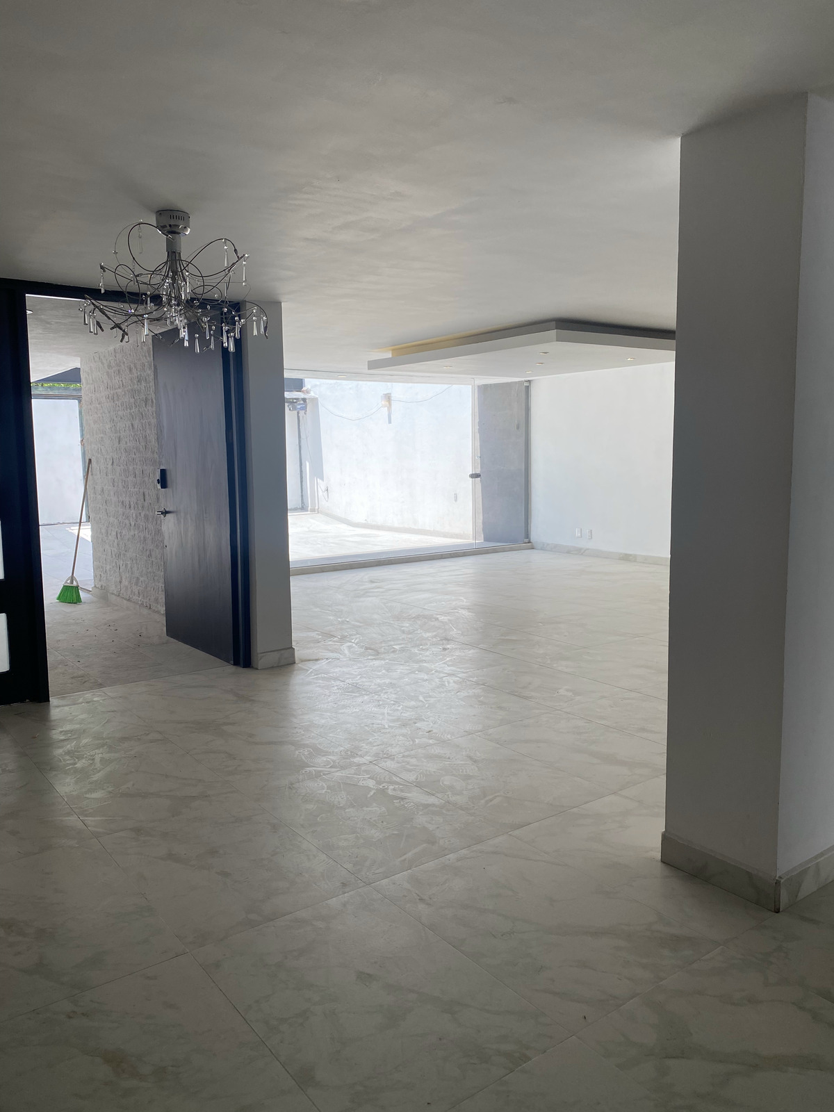 La casa tiene sala y comedor con Luces indirectas grandes.