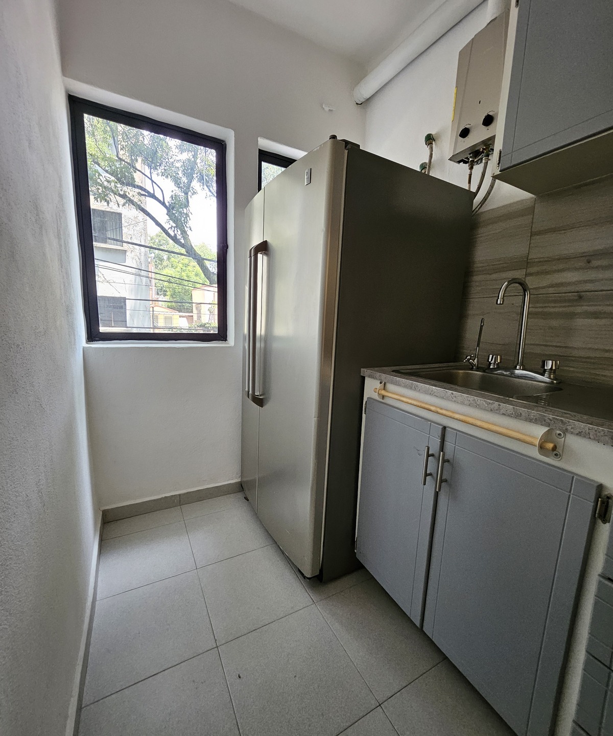 El departamento está muy bien ubicado en el corazón de la colonia condesa y se encuentra en un primer piso, cuenta con una estancia sala comedor, cocina equipada, con refrigerador y lavadora-secadora, un baño completo, un estudio muy espacioso y dos habitaciones, la principal con aire acondicionado.