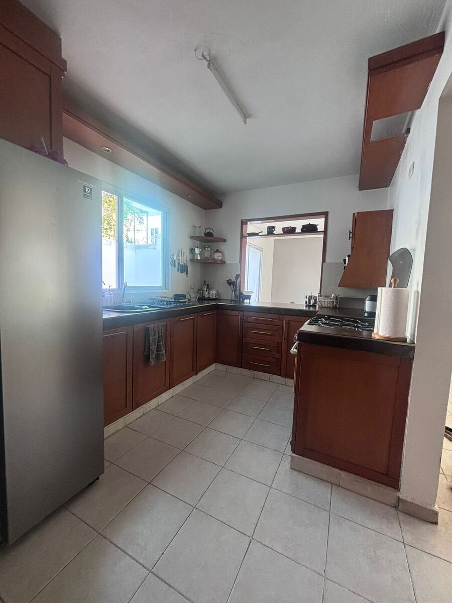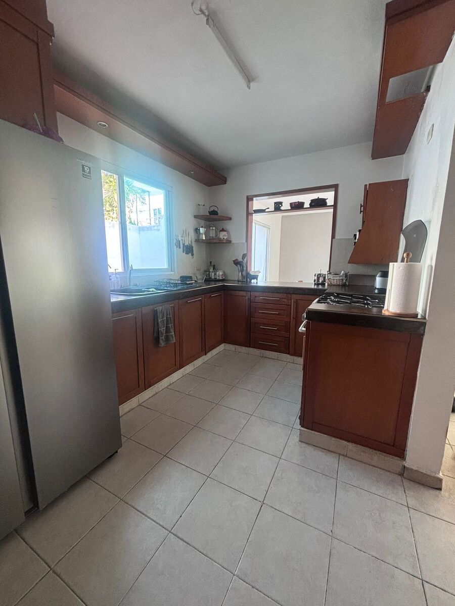 Sala, comedor, cocina equipada, 1 récamara, cuarto de servicio con baño, cuarto de lavado, medio baño.