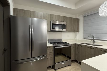 - Sala, comedor y cocina integral con diseño de concepto abierto