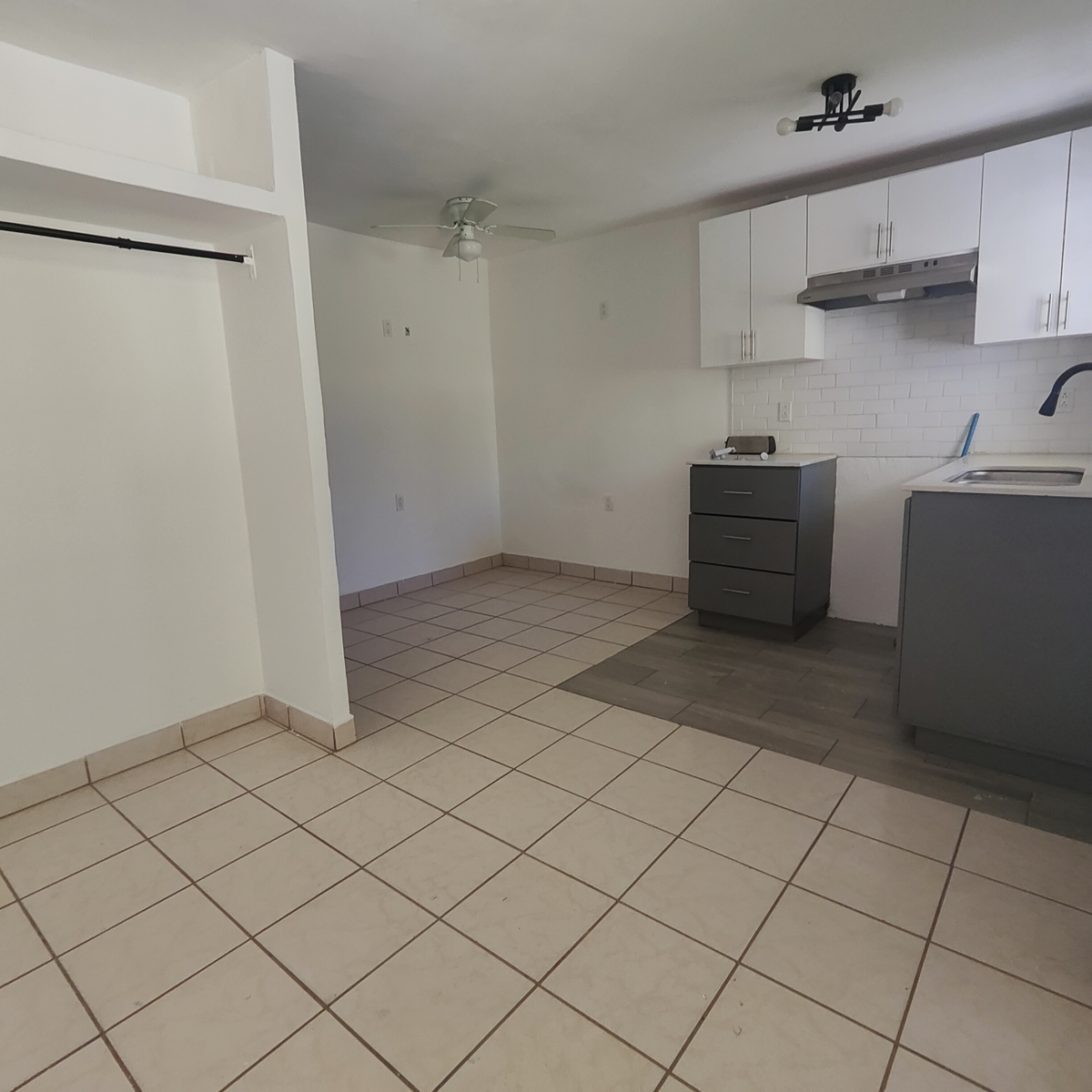 Cuenta con baño completo, con espacio para cocina y gabinetes, en muy buen estado, recién remodelado.