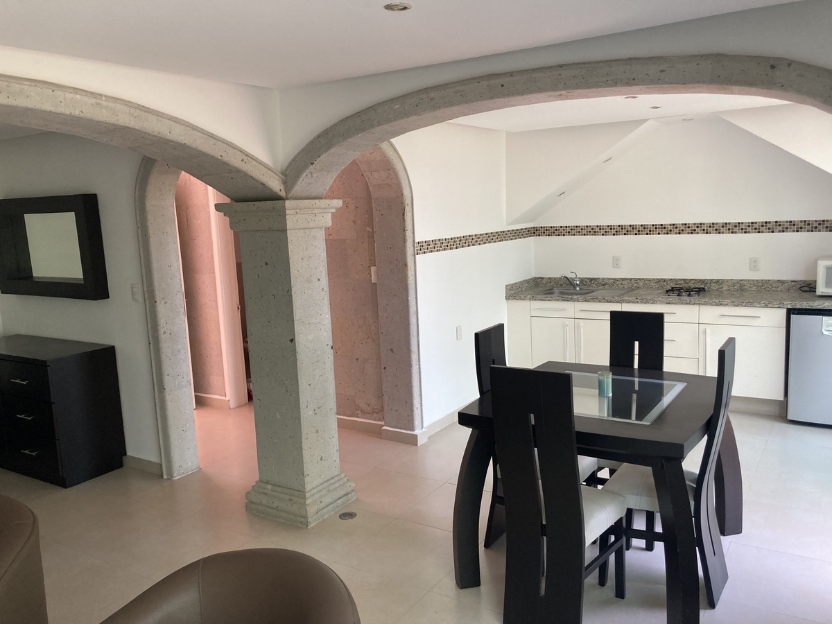 Este hermoso departamento tipo Villa, se ubica dentro del Exclusivo fraccionamiento Villas del Mesón - Peninsula Juriquilla. Tiene vista al campo de golf y podrás disfrutar de paseos a la orilla del lago. Cuenta con una bella terraza, está amueblado y equipado para que tu estancia sea la que tú mereces.
