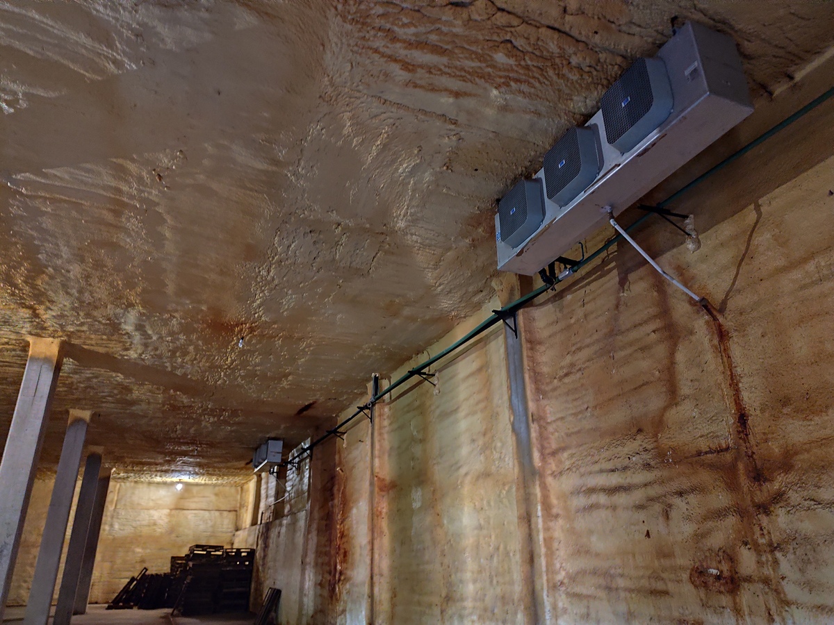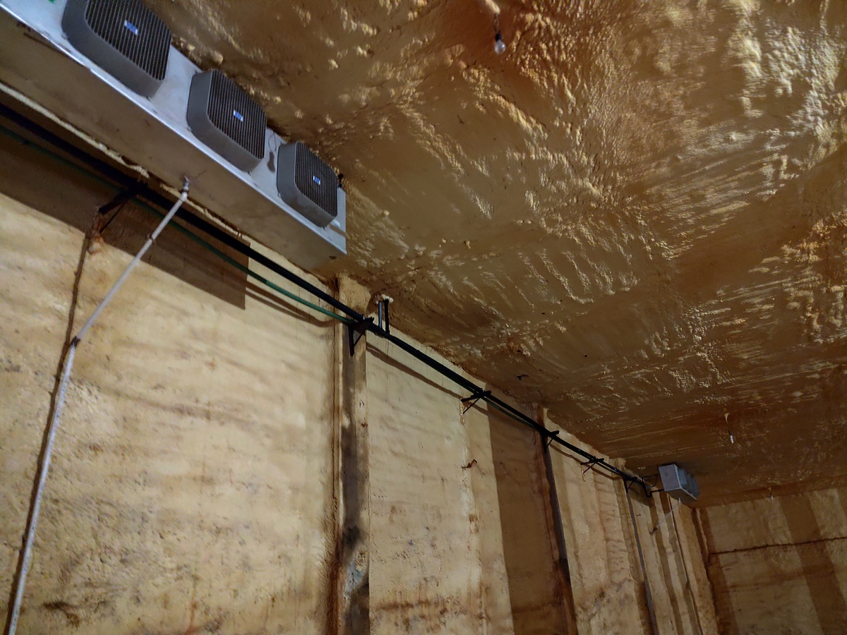Bodega con aislamiento térmico diseñada con sistema de refrigeración, ideal para conservación y almacenamiento de productos perecederos.
