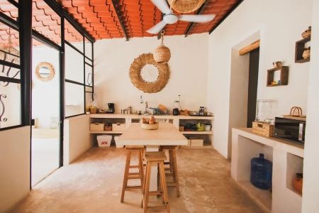 La casa tiene sala comedor dos cocinas, cuatro recámaras con cuatro baños, estacionamiento para un auto.