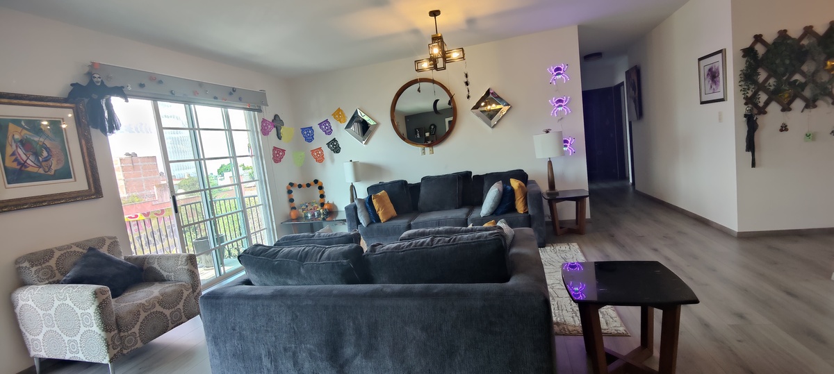 Se vende precioso departamento prácticamente nuevo en Lomas de Tecamachalco, en la zona del pueblo, rodeado de comercios, restaurantes, tiendas y todos los servicios a unos pasos. El edificio cuenta únicamente con 11 departamentos, lo que lo hace muy privado y exclusivo, además de ofrecer vigilancia privada y un pequeño jardín como área común. El departamento tiene 172 metros muy bien distribuidos y acabados de gran calidad. La estancia de sala y comedor es amplia, luminosa y abierta, con dos balcones que llenan el espacio de luz natural y una cocina moderna de concepto abierto con gran despensa. Dispone de tres recámaras: la principal con baño propio, vestidor y balcón privado; y dos recámaras secundarias con clóset que comparten un baño. También cuenta con cuarto de lavado con ventilación natural, techos altos, tres balcones en total y excelente orientación, lo que lo hace muy cálido y acogedor. Incluye dos lugares de estacionamiento en batería y una bodega de gran tamaño, ubicada en el mismo nivel del departamento para mayor comodidad. Una propiedad lista para habitar que combina practicidad, confort y una ubicación inmejorable. Vale la pena conocerlo, agende su cita.