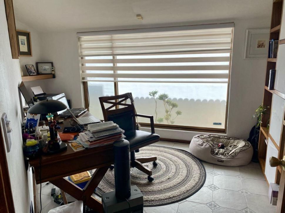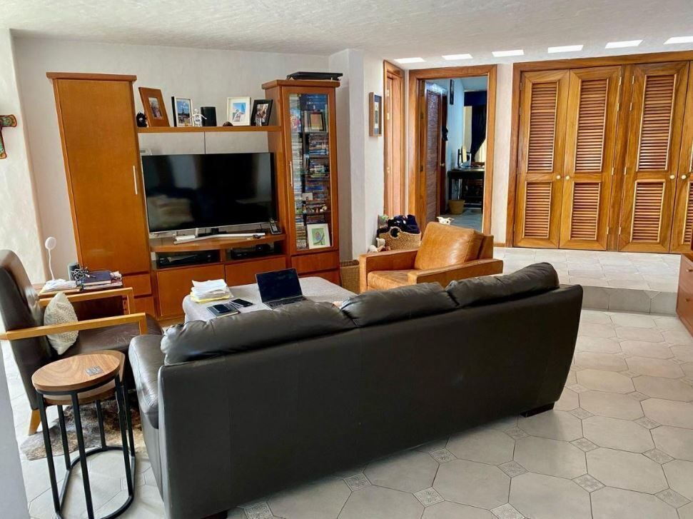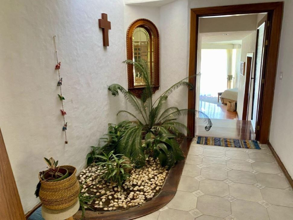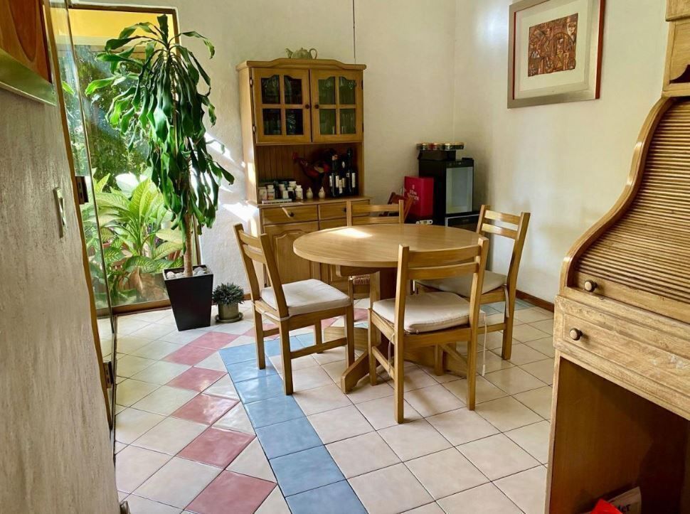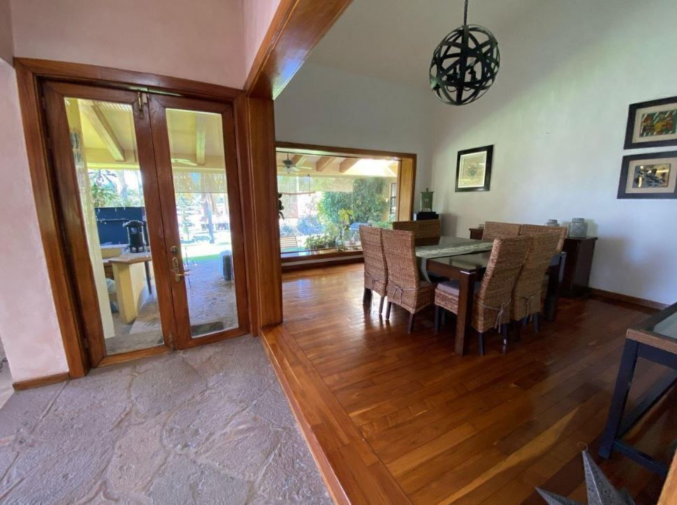 - Area de recibidor, sala a doble altura con chimenea de gas, comedor con vista al jardín, medio baño para visitas.