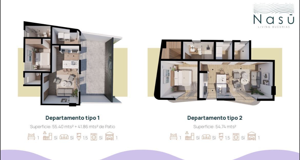 TIPO 1: $ 338,054.70 USD C- 55.40m2 + 41.86 de Balcón