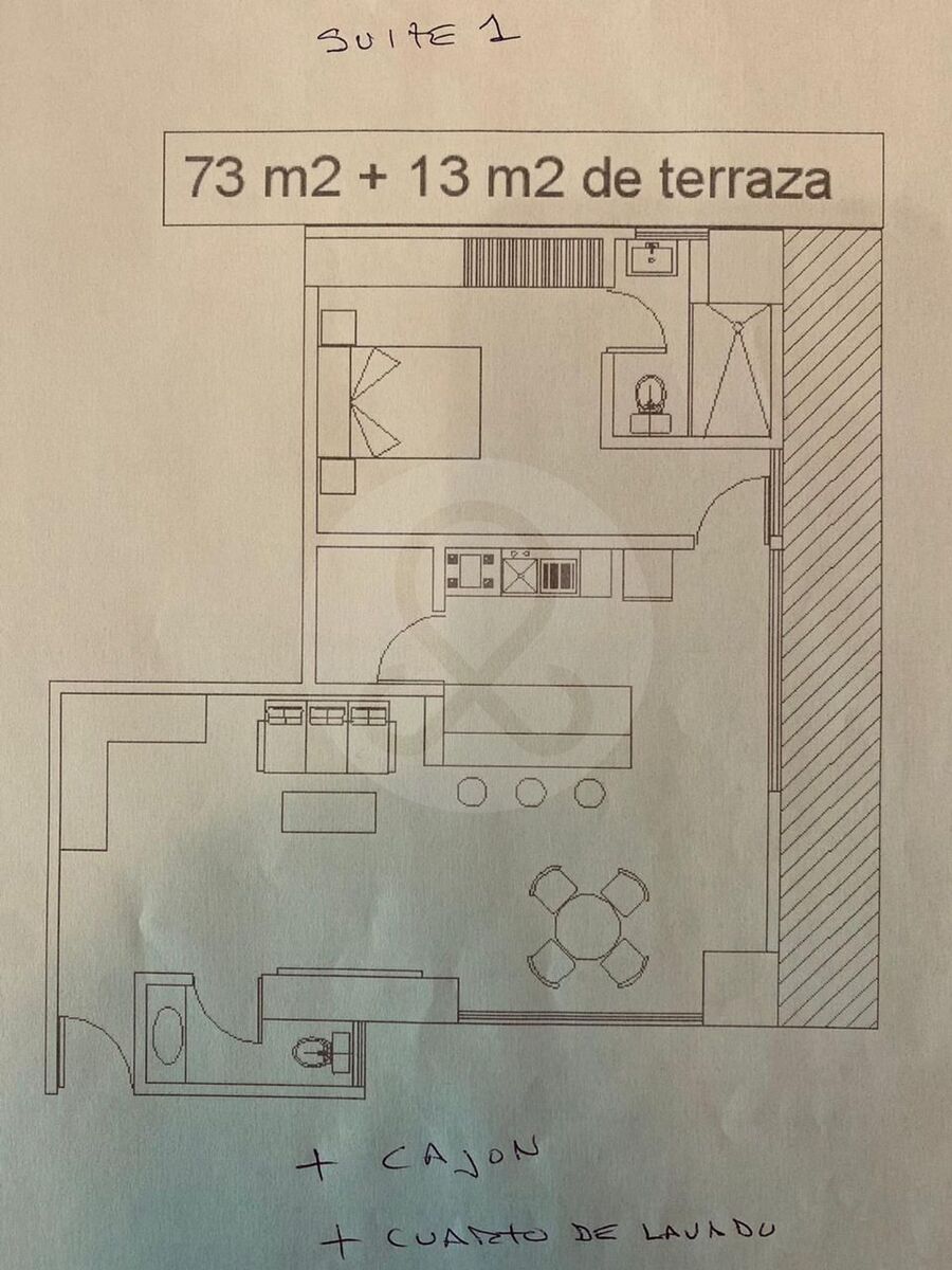73m2 habitables mas 13m2 de terraza propia, rodeado de jardín mas cuarto de servicio.