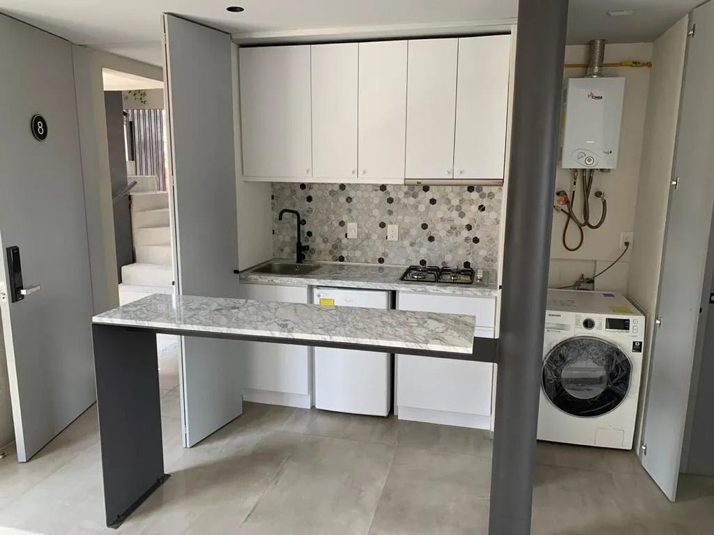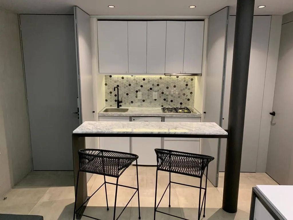 Las suites cuentan con estancia, comedor recámara con clóset, cocina oculta (con gabinetes, frigobar, tarja, parrilla, campana y microondas),baño completo y cuarto de lavado(con calentador instantáneo y lava-secadora con capacidad de 10kg).