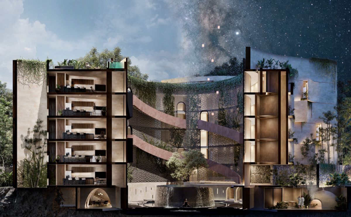 Designed for holistic well being, it offers world class amenities to revitalize the mind, body, and soul, including hanging gardens, a temazcal, ice bath, meditation areas, yoga, massage spaces, and more creating a sanctuary of serenity and balance.