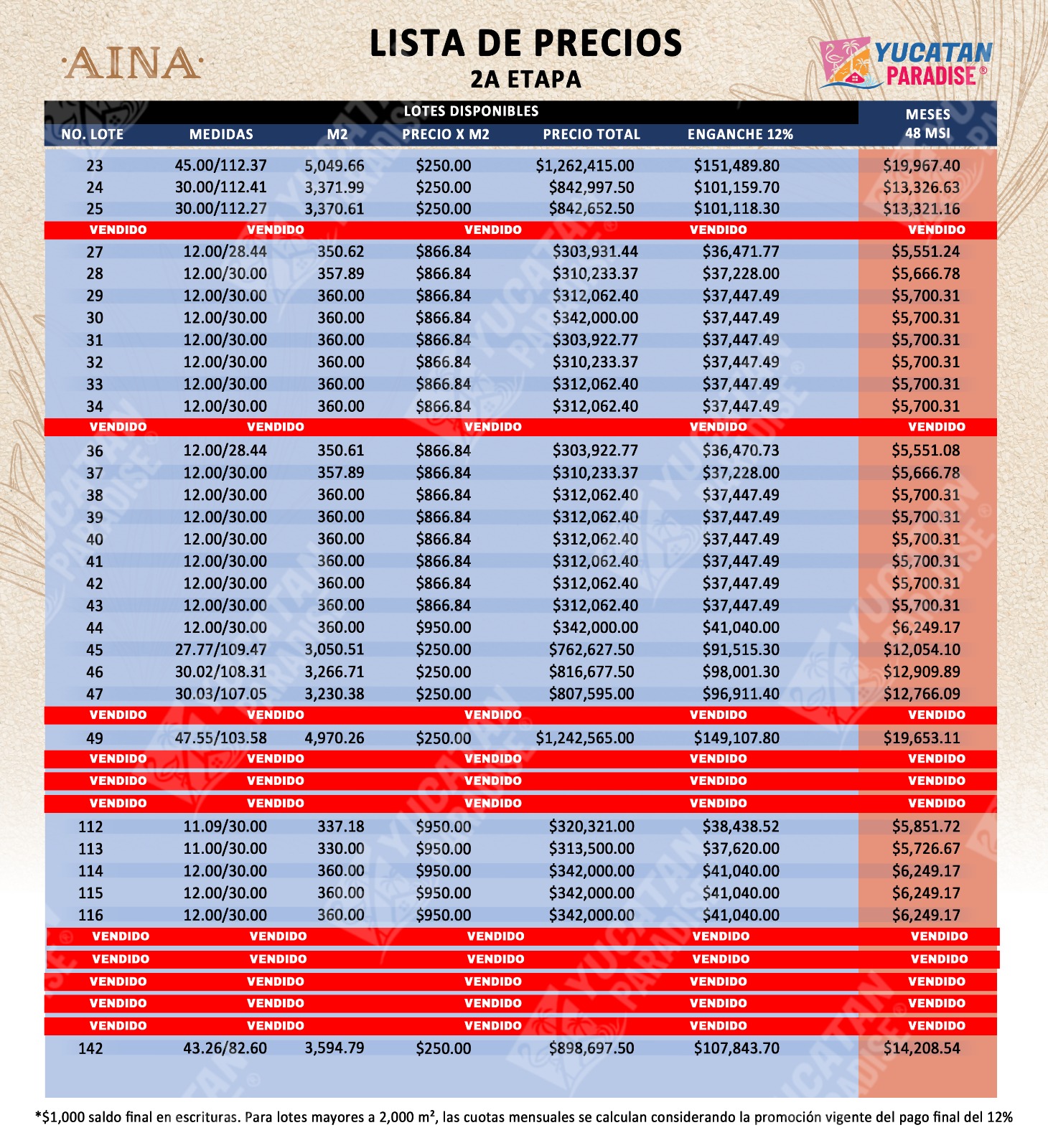 En lotes grandes tenemos la oportunidad de comprar en financiamiento a 48 msi dando 12% al enganche y 12% saldo final.