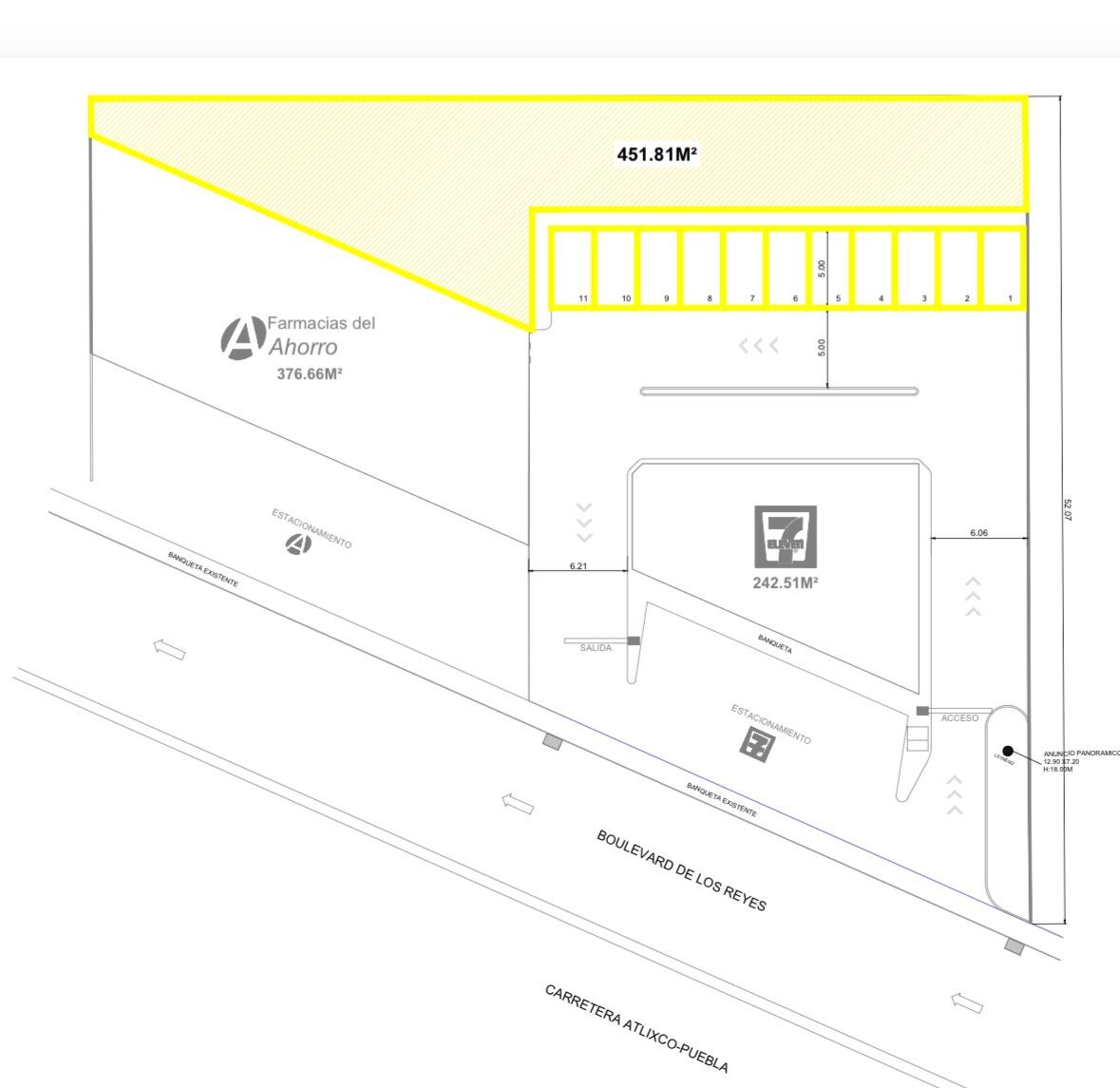 TERRENO EN RENTA EN LATERAL VIA ATLIXCAYOTL, DE 451.81 METROS CUADRADOS, CUENTA CON DRENAJE Y LUZ, IDEAL PARA USO COMERCIAL, EL TERRENO TIENE EXCELENTE FRENTE, ENCONTRARAS BASTANTE FLUJO VEHICULAR, CON FACILIDAD PARA ESTACIONARSE, NO TIENE PENDIENTES, A SOLO UNOS METROS DE LA CASETA SALIDA A ATLIXCO, TAMBIÉN ENCONTRARAS MUY CERCA FARMACIAS, RESTAURANTES, GASOLINERAS Y PLAZAS COMERCIALES.