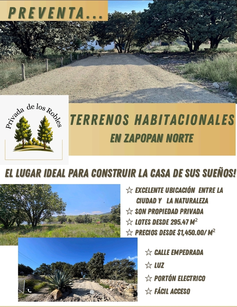 Hermosos terrenos en venta en Zapopan Norte con una excelente ubicación, muy cerca de la ciudad y rodeados de naturaleza.