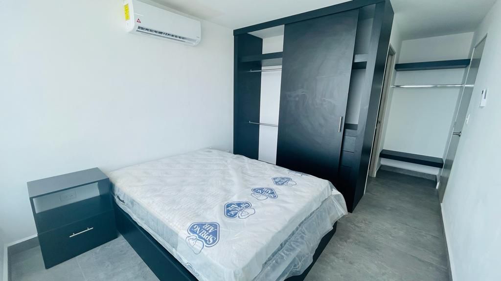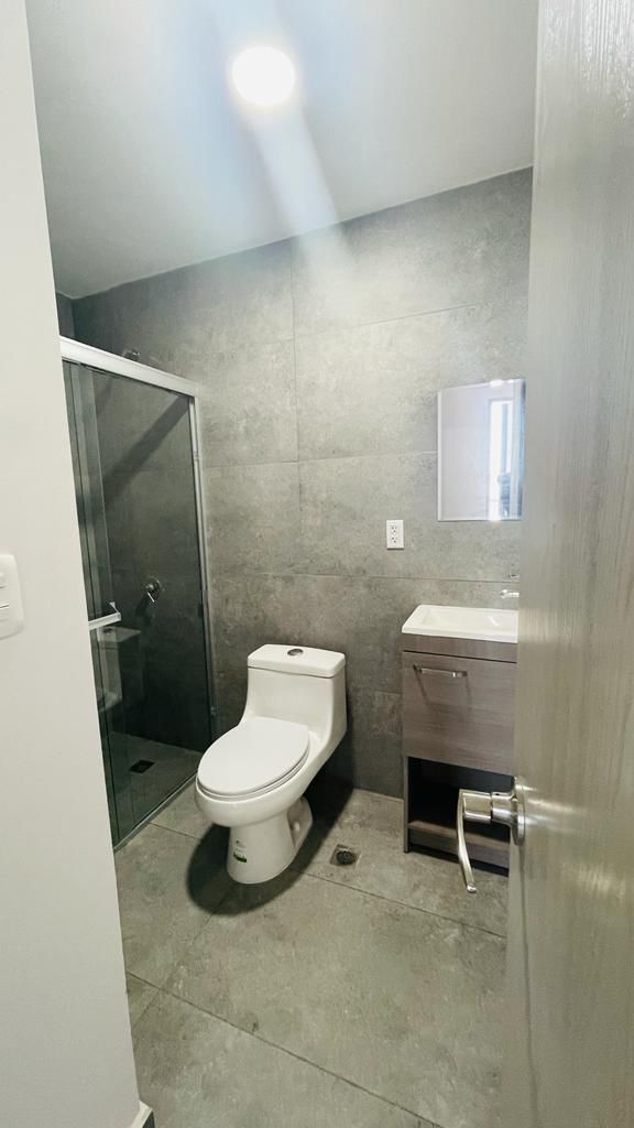 2 recámaras, 2 baños completos, cocina con barra, salita, comedor y pequeño balcón en sala y recámara.