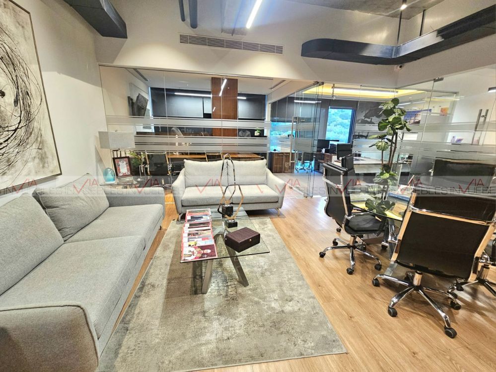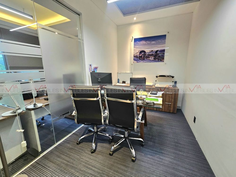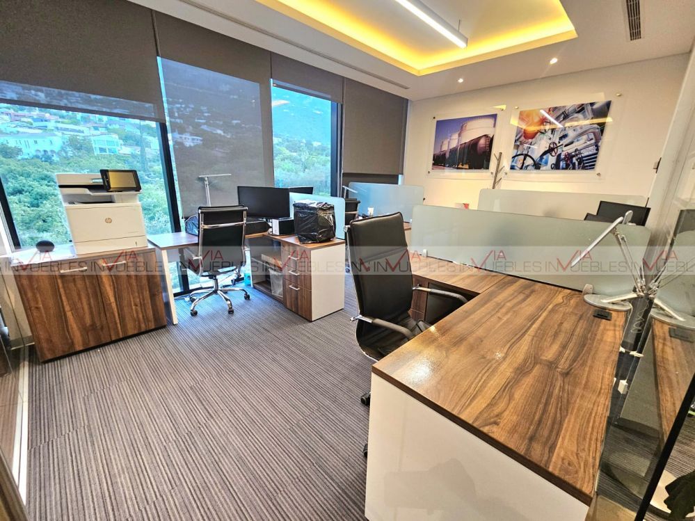 Exclusiva oficina en renta completamente equipada, con acabados de lujo en Torre Kerkus Sur, en San Pedro Garza García, con hermosas vistas a la Sierra Madre y mucha luz natural.