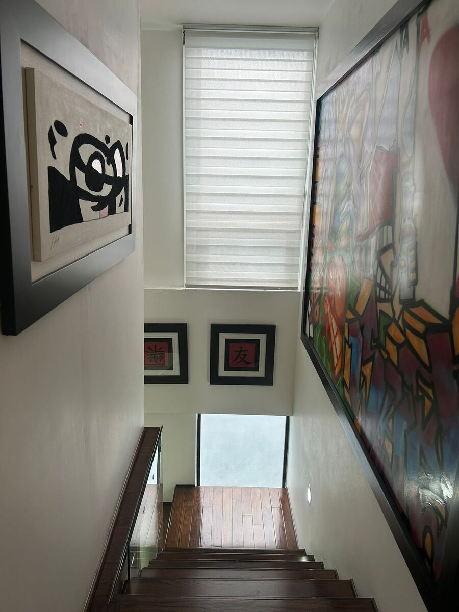 En la planta alta, la recámara principal te recibe con baño con doble lavabo, vestidor de gran tamaño y persiana eléctrica, creando un ambiente íntimo y sofisticado.